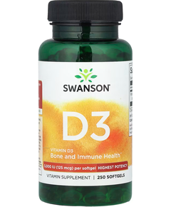 Харчова добавка. Дієтична добавка. Вітамін D3 125 мкг 5000 МО Найвищої Ефективності 250 м'яких капсул. Капсули D3 від Swanson допоможуть вам задовольнити щоденну потребу в цьому багатозадачному вітаміні. Можливо, ви знаєте, що вітамін D3 корисний для здоров’я кісток, але не тільки! Вітамін D...