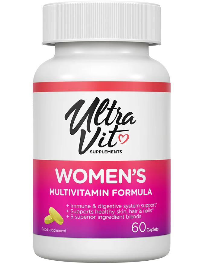 Мультивітамінна формула UltraVit для жінок ретельно розроблена для покращення загального самопочуття жінок, зосереджуючись на здоров'ї імунної системи та травлення, а також на красі шкіри, волосся та нігтів. Ця вдосконалена формула поєднує вітамін А, що підтримує імунітет, кальцій, що сприяє травленню, та поживні речовини, що покращують красу, такі як біотин, селен та цинк, у п'яти чудових сумішах інгредієнтів.