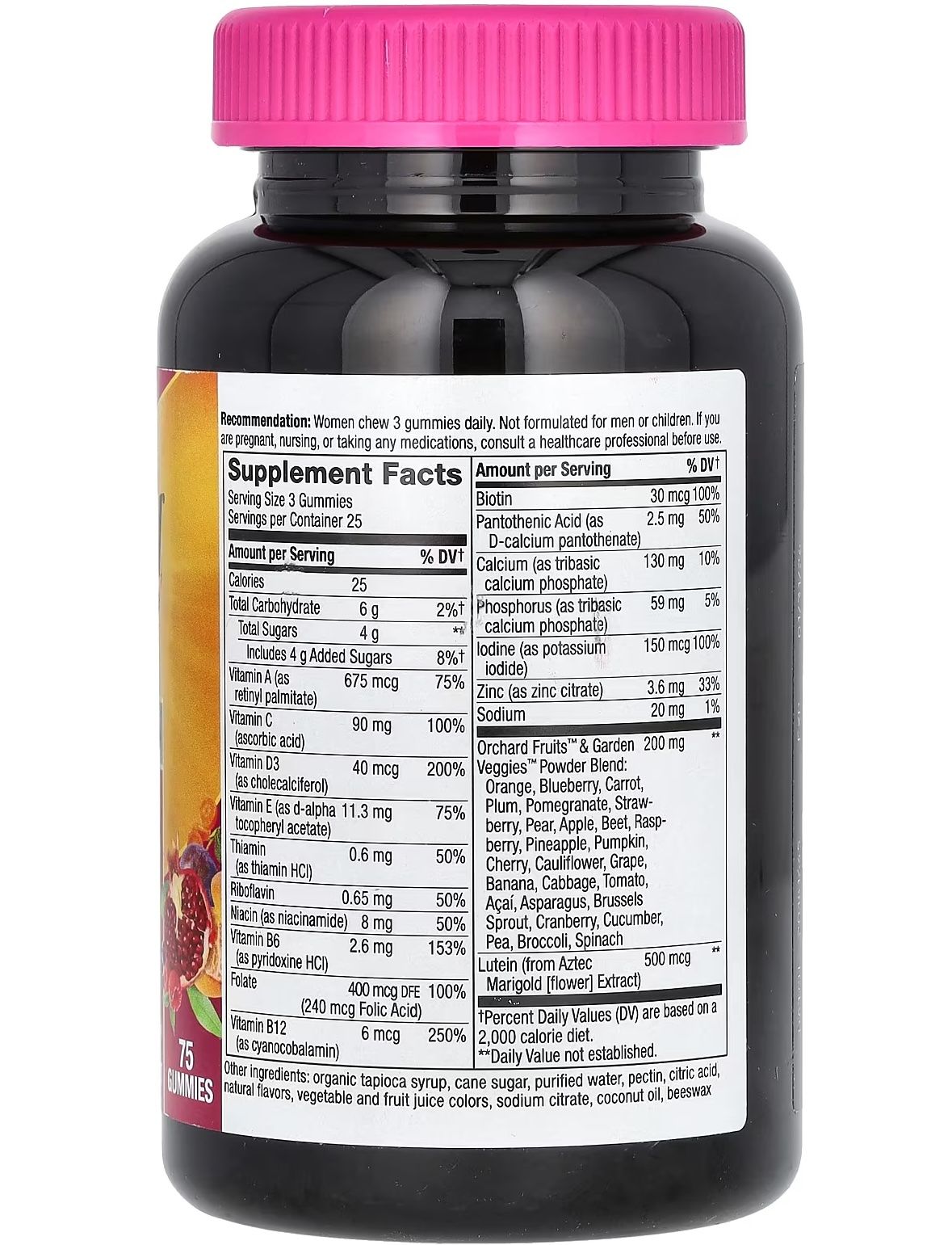 - Рекомендації із застосування: жінкам слід приймати по 3 жувальні таблетки на день, бажано під час їжі. Не призначено для чоловіків і дітей.