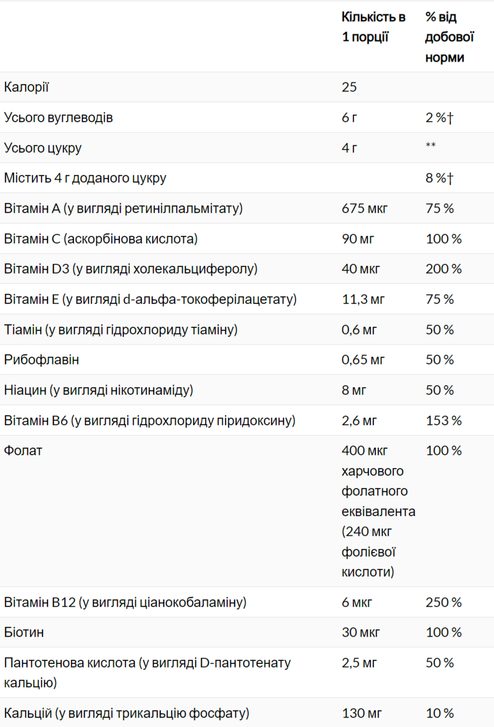 - Кількість в 1 порції: