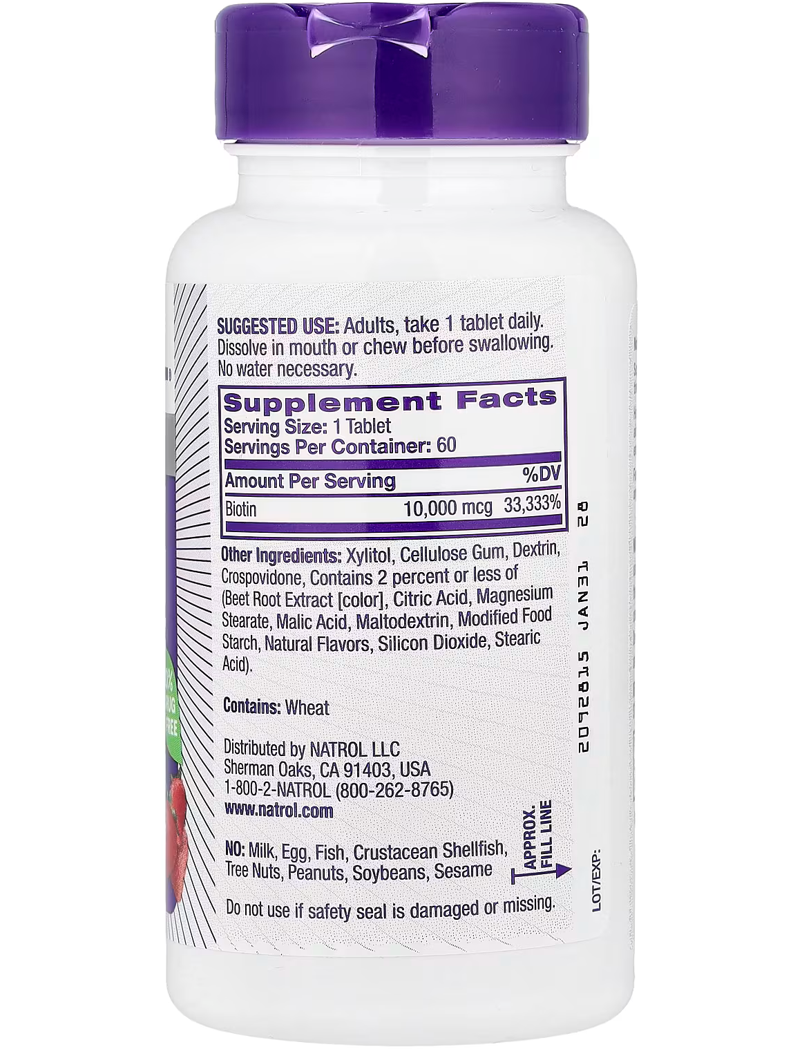 Біотин від Natrol® у швидкорозчинній формі, 10 000 мкг