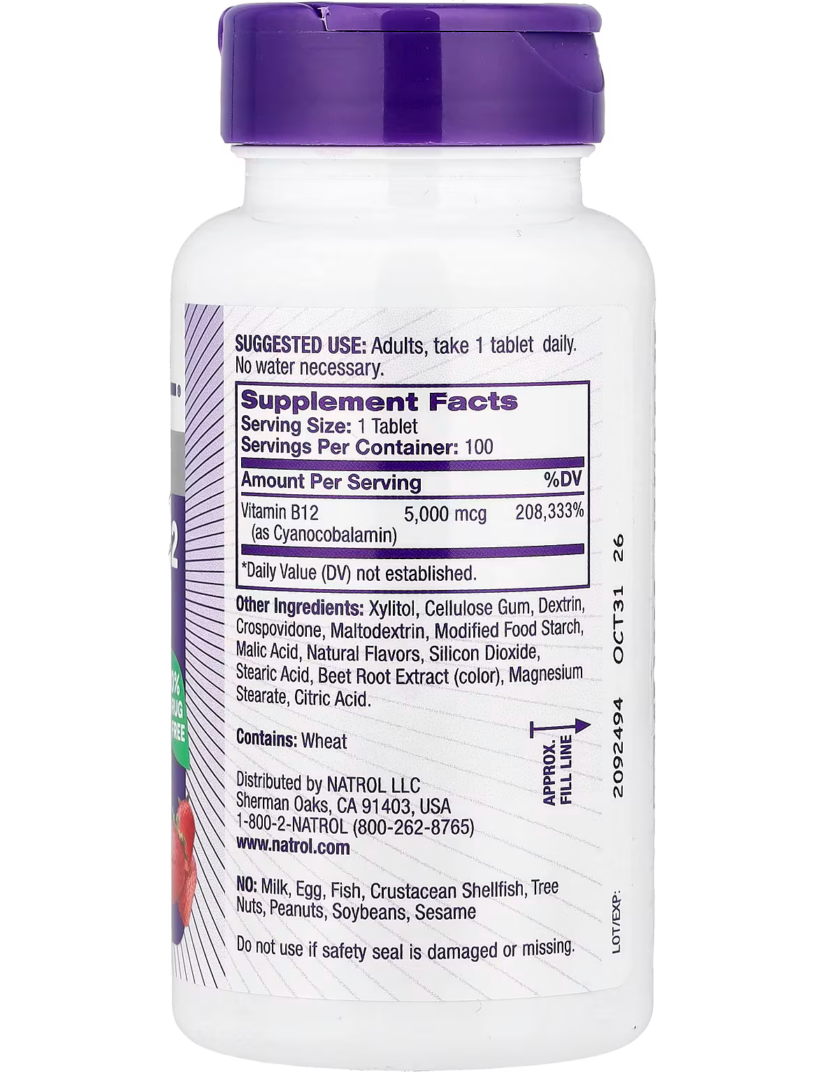 - Кількість в 1 порції: Вітамін B12 (у вигляді ціанокобаламіну) 5000 мкг