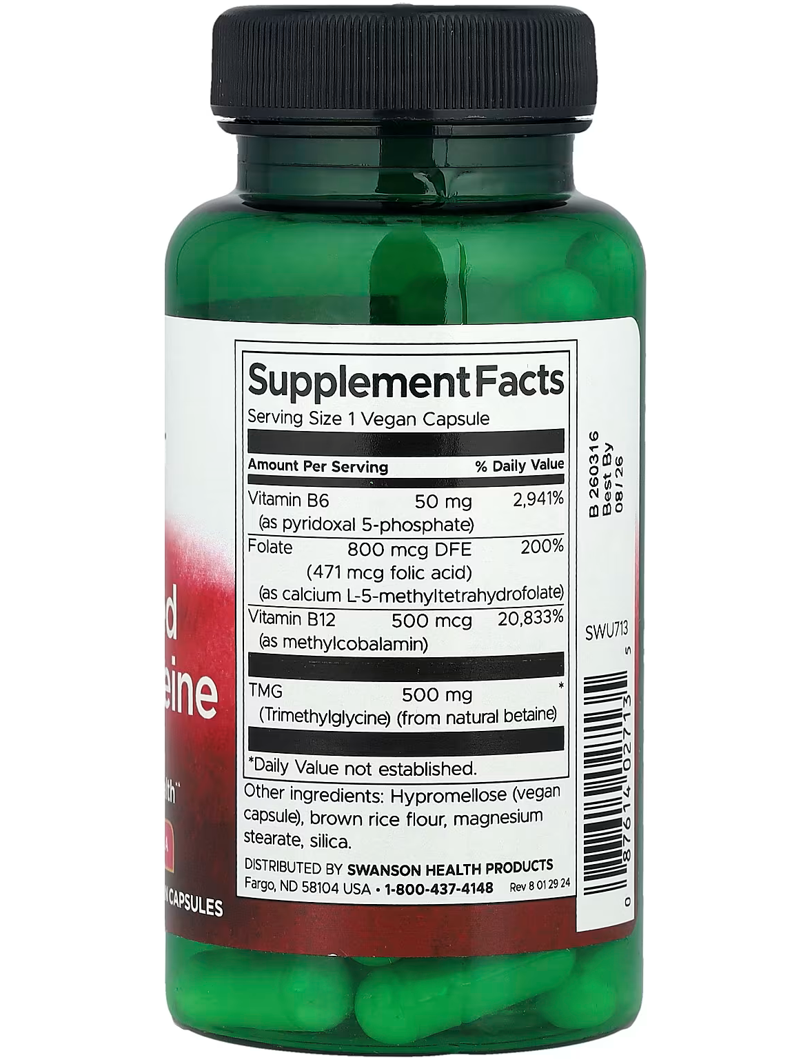 Наша формула з ультраактивованим гомоцистеїном від Swanson, спеціально розроблена для підтримки здорового рівня гомоцистеїну в межах норми, містить відновлені біологічно активні форми основних пов’язаних із гомоцистеїном поживних речовин, зокрема фолат і вітамін B12 (метилкобаламін). Підтримка здорового рівня гомоцистеїну сприяє здоров’ю серцево-судинної системи та нервової системи, а також загальному гарному самопочуттю.