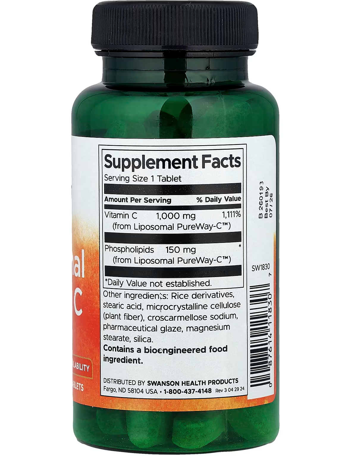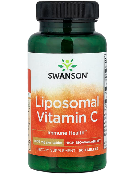 Вітамін C, який зазвичай міститься в кольорових овочах і цитрусових, не тільки підтримує здоров’я імунної системи. Він також необхідний для природного вироблення колагену, що підтримує здоров’я шкіри, суглобів та інших сполучних тканин. Він полегшує засвоєння заліза для підтримки здорового рівня енергії. Цей борець із вільними радикалами підтримує серце й зір, а також допомагає організму відновлювати антиоксидантний вітамін E. Крім того, як потужний антиоксидант вітамін C бере участь у підтримці багатьох функцій організму, зокрема центральної нервової, серцево-судинної та метаболічної систем, допомагаючи захистити їх від окисного пошкодження. Наш ліпосомальний вітамін C містить 1000 мг ефективного вітаміну C і 150 мг фосфоліпідів із клінічно вивченого PureWay-C™. Забезпечте ефективну підтримку імунної системи й не тільки за допомогою ліпосомального вітаміну C від Swanson.