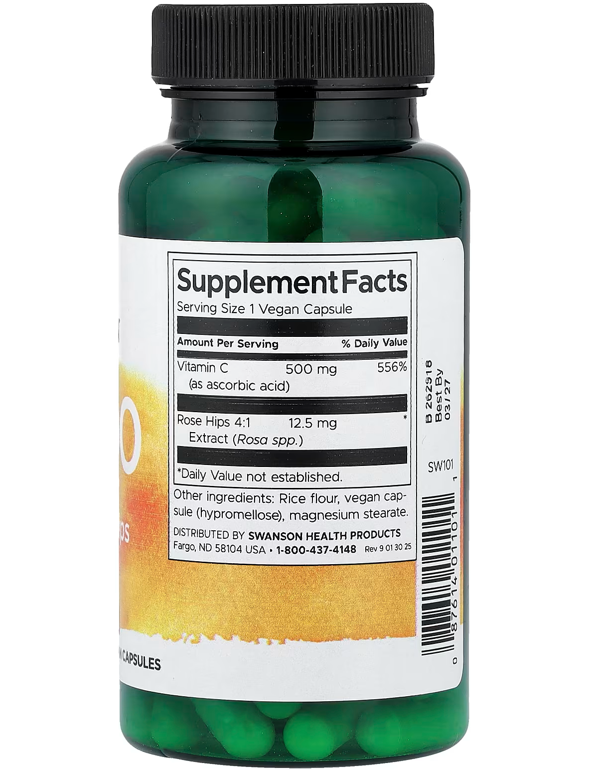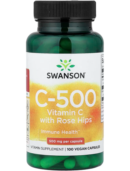 Харчова добавка. Дієтична добавка. Вітамін C з Шипшиною 500 мг 100 веганських капсул.