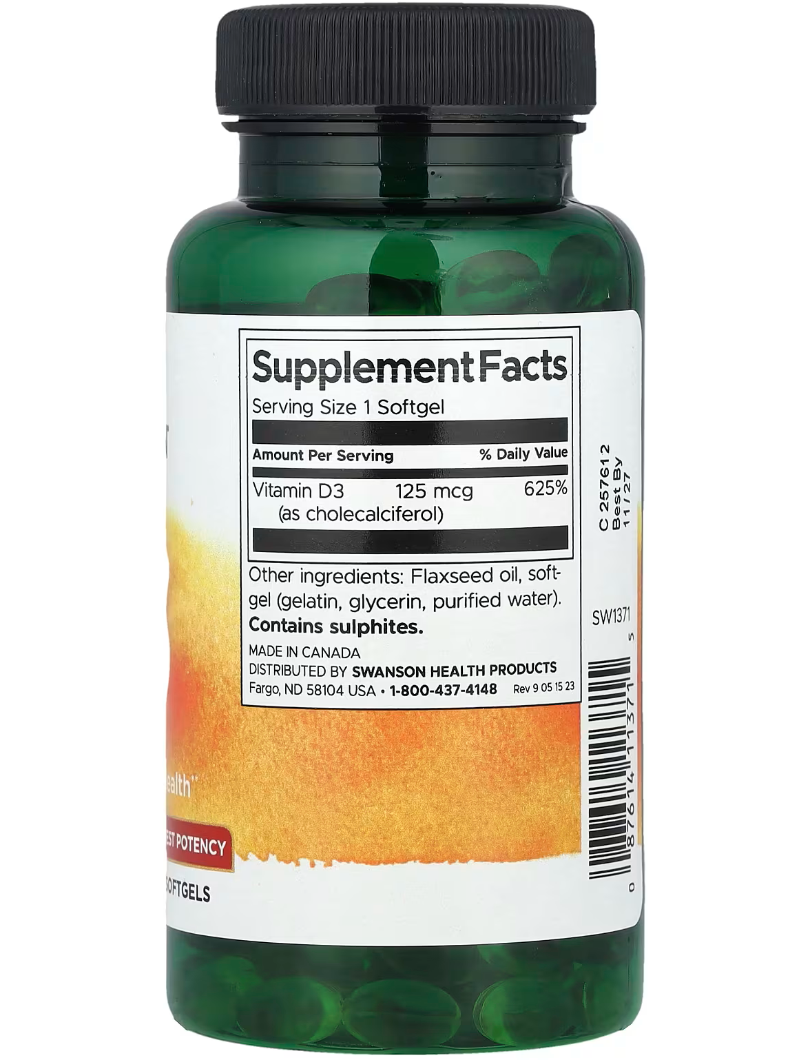 Капсули D3 від Swanson допоможуть вам задовольнити щоденну потребу в цьому багатозадачному вітаміні. Можливо, ви знаєте, що вітамін D3 корисний для здоров’я кісток, але не тільки! Вітамін D допомагає будувати й підтримувати міцні кістки протягом усього життя, покращуючи засвоєння організмом мікроелементів кальцію і фосфору. Ця роль у використанні та балансі мікроелементів також сприяє здоров’ю зубів (адже зуби — це мінералізовані органи), а також здоров’ю серця й кровообігу (забезпечуючи правильний розподіл цих мікроелементів між кістками й артеріями).