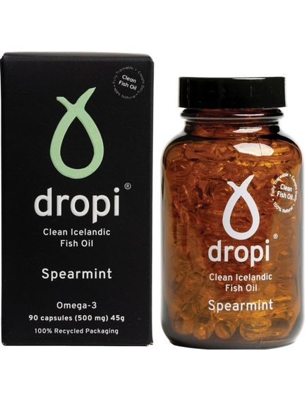 Dropi - це виключно холодна оброблена риб'яча олія першого віджиму, виготовлена лише з атлантичної тріски (Gadus morhua). Оскільки ми обробляємо масло холодним способом, додаткові вітаміни не додаються. Чистий і свіжий від океану до пляшки. Капсули виготовлені з риб'ячого желатину. Екстракт м’яти, який використовується для ароматизації, є органічним.