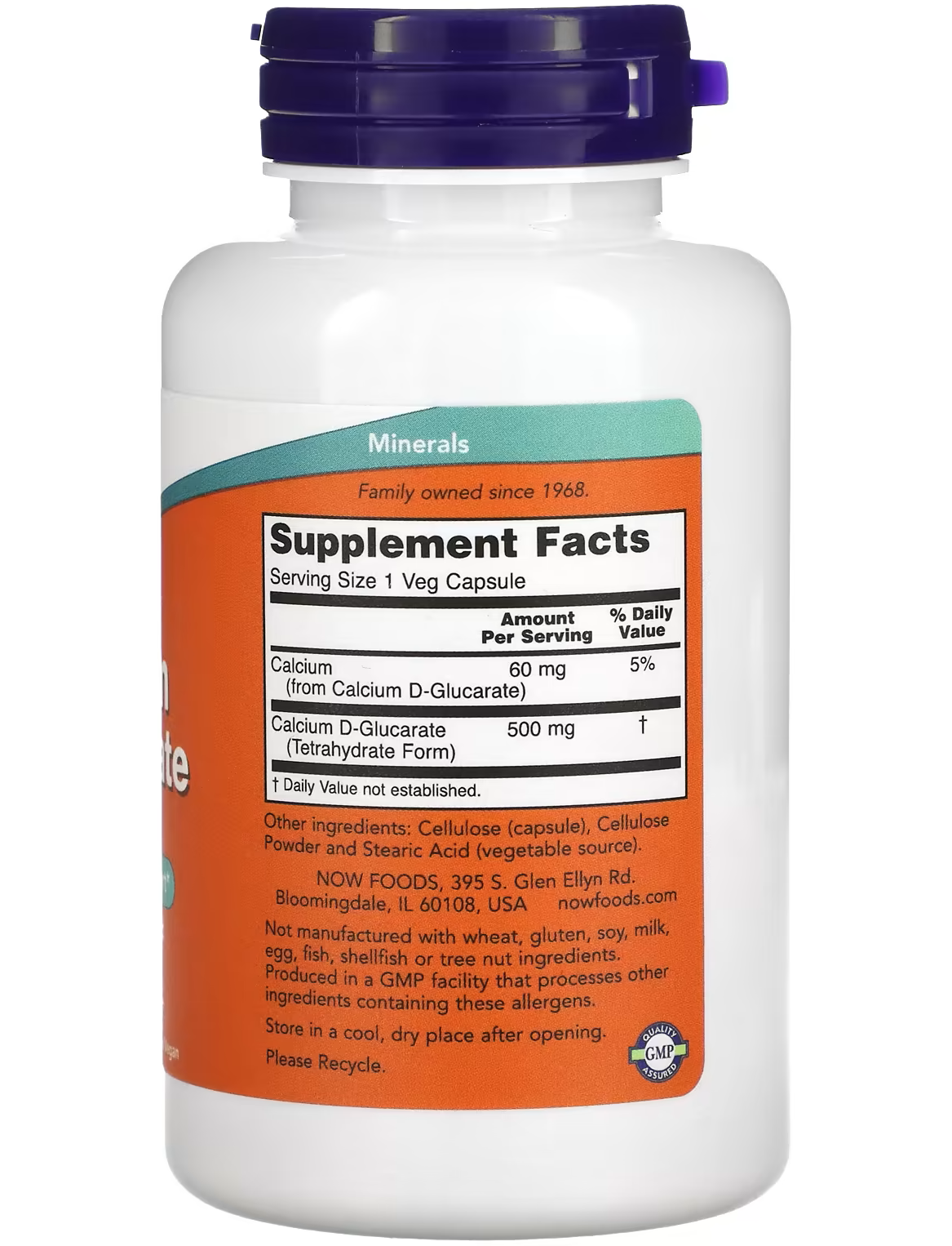 D-глюкарат кальцію — це кальцієва сіль D-глюкарієвої кислоти, яка природно виробляється в організмі в невеликих кількостях. Глюкарієва кислота міститься також у багатьох фруктах та овочах. Наукові дослідження довели, що D-глюкарат кальцію може полегшити повну детоксикацію та виведення певних відходів метаболізму та складних речовин навколишнього середовища з організму. Допомагаючи природним механізмам очищення організму, D-глюкарат кальцію може підтримувати нормальну роботу клітин і сприяти здоров'ю печінки, простати та грудей.