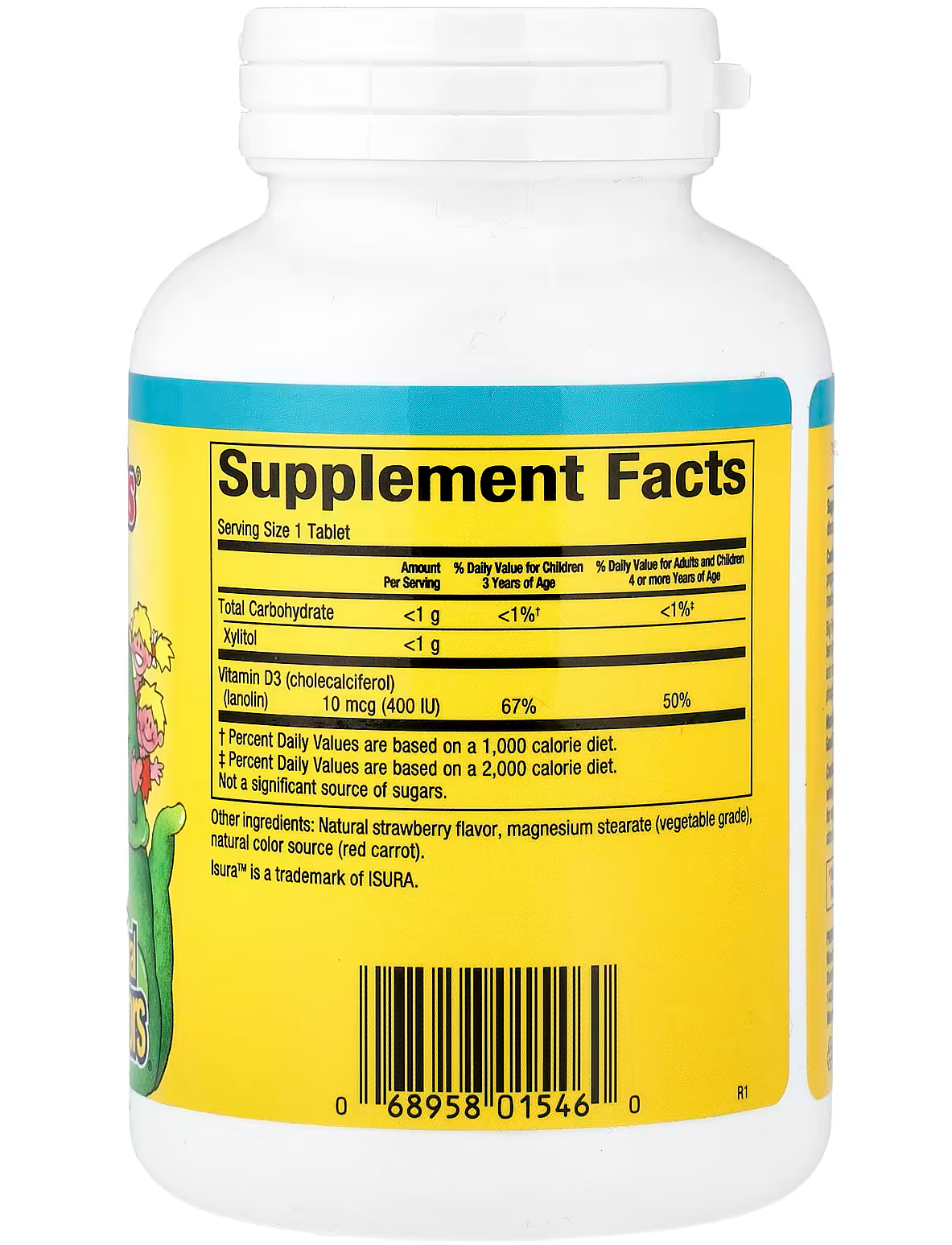 - Рекомендації із застосування: Діти старше 3 років: жувати 1 таблетку 1–2 рази на день або відповідно до рекомендацій лікаря.