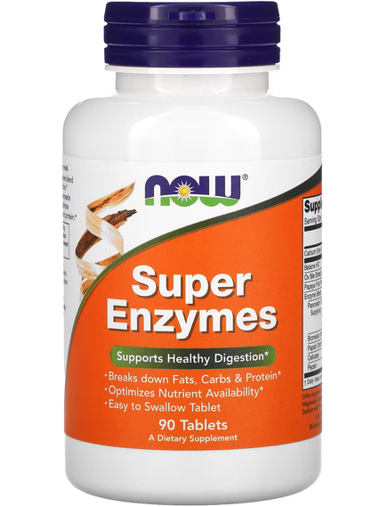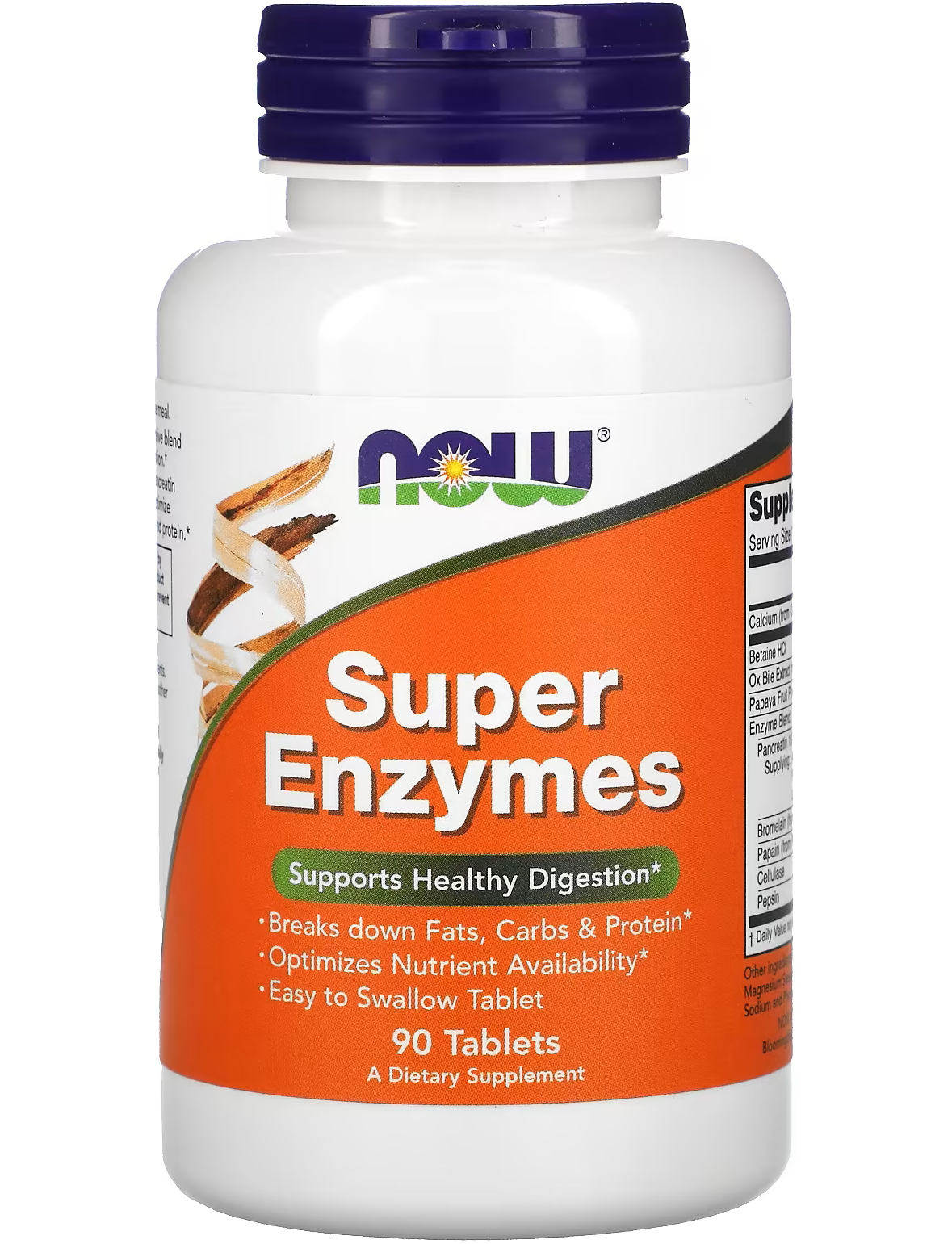 Суперферменти Now — це комплексна суміш ферментів, яка підтримує здорове травлення. Розроблений з бромелаїном, бичачою жовчю, панкреатином та папаїном, препарат з суперферментів допомагає оптимізувати розщеплення жирів, вуглеводів та білків.