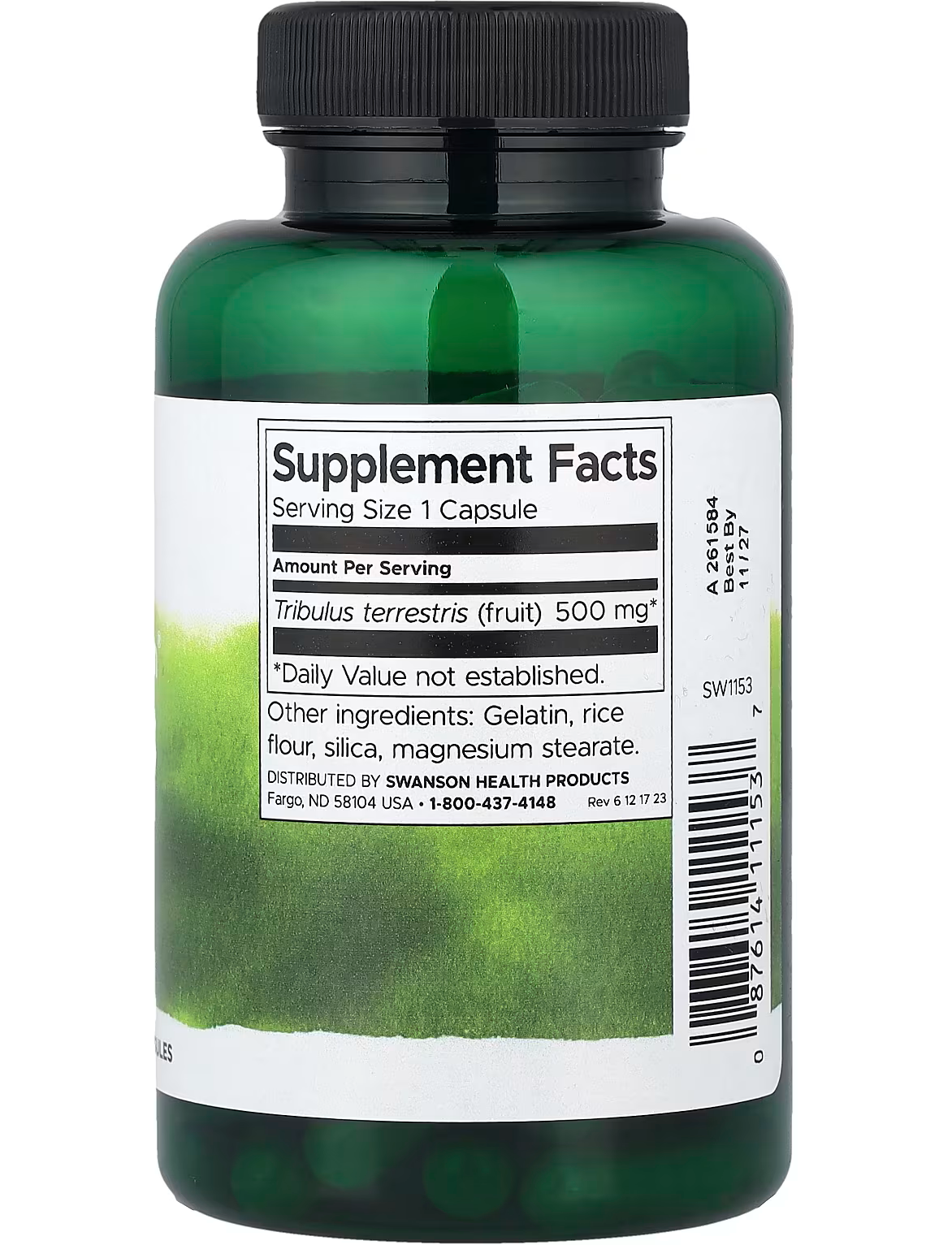 Плоди якірців від Swanson — це ефективна добавка для підвищення лібідо та стимулювання вироблення тестостерону. Її можна використовувати чоловікам і жінкам. Кожна порція в одній капсулі містить 500 мг плодів трибулуса террестрису повного спектру дії.