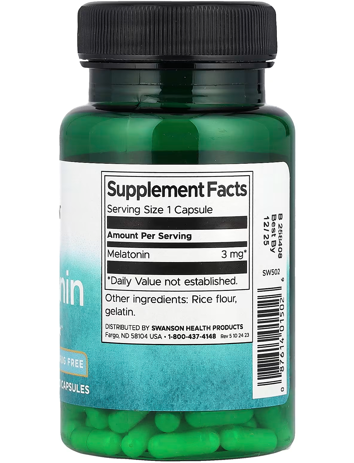 Керуйте своїм циклом сну та неспання за допомогою мелатоніну Swanson! Цей корисний гормон відновлює нормальний режим сну та забезпечує чудову антиоксидантну підтримку організму. Належний рівень мелатоніну також позитивно впливає на когнітивні функції та допомагає боротися зі стресом. Кожна капсула містить 3 мг мелатоніну.