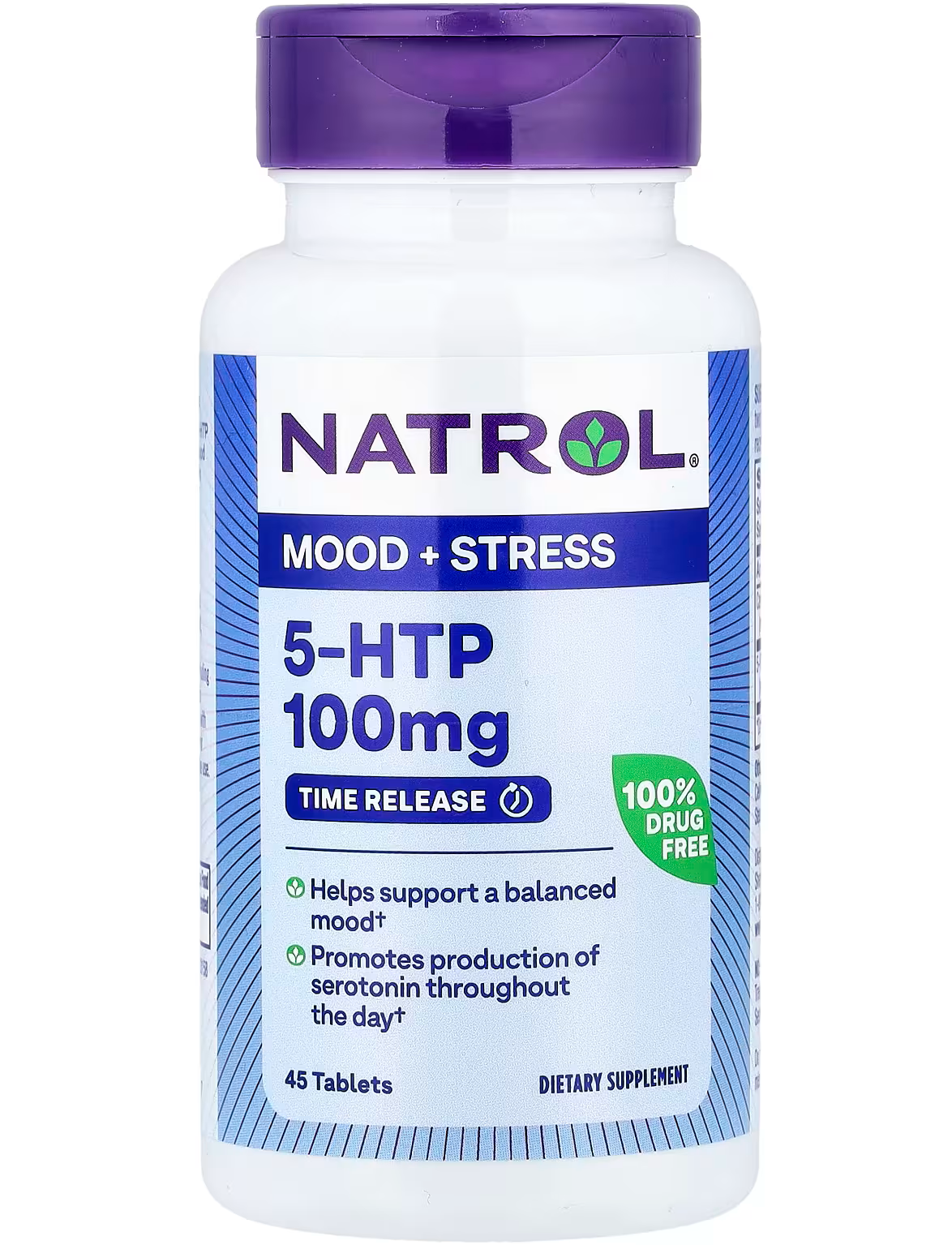 Natrol® 5-HTP 100 мг із часом вивільнення: Таблетка з контрольованим вивільненням повільно вивільняє 5-HTP, що допомагає підтримувати збалансований настрій і сприяє виробленню серотоніну протягом дня.