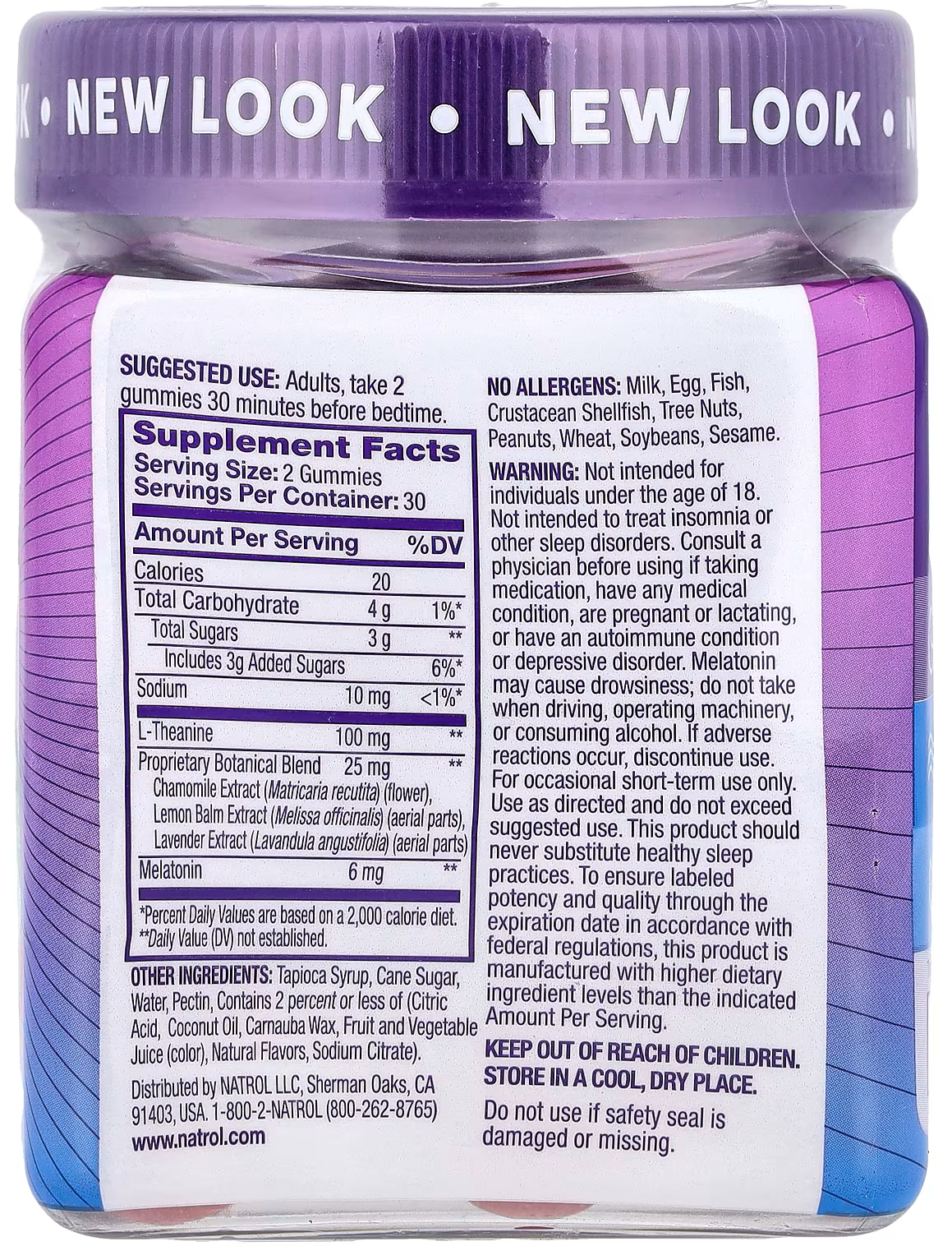 Не призначено для осіб віком до 18 років. Не призначений для лікування безсоння або інших розладів сну. Перед застосуванням слід проконсультуватися з лікарем, якщо приймаєте ліки, маєте будь-які захворювання, вагітні, годуєте грудьми, маєте аутоімунне захворювання або депресивний розлад. Мелатонін може викликати сонливість; не приймайте під час керування автомобілем, роботи з механізмами або вживання алкоголю. У разі виникнення побічних реакцій слід припинити використання. Тільки для нерегулярного короткочасного використання. Використовуйте згідно з інструкцією та не перевищуйте рекомендовану дозу. Цей продукт ніколи не повинен замінювати здоровий сон. Для забезпечення ефективності та якості на етикетці протягом терміну придатності відповідно до федеральних правил, цей продукт виготовляється з вищою кількістю дієтичних інгредієнтів, ніж указана кількість на порцію.