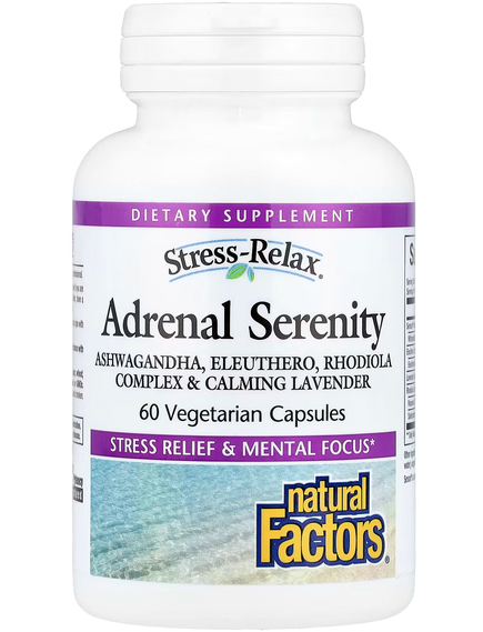 Харчова добавка. Дієтична добавка. Stress-Relax Засіб для спокійної роботи наднирників 60 вегетаріанських капсул.