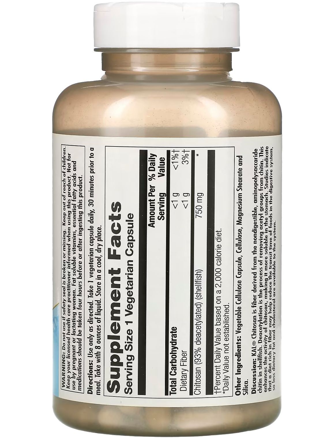 Хітозан від KAL — це клітковина, отримана з не засвоюваного амінополісахаридного хітину в молюсках. Деацетилювання — процес видалення ацетильних груп з хітину. Це посилює активність хітозану, що робить його більш розчинним у шлунку. Деякі дослідження показують, що дієта, багата клітковиною, допомагає зменшити час проходження їжі через травну систему, що дозволяє скоротити споживання жиру та холестерину.