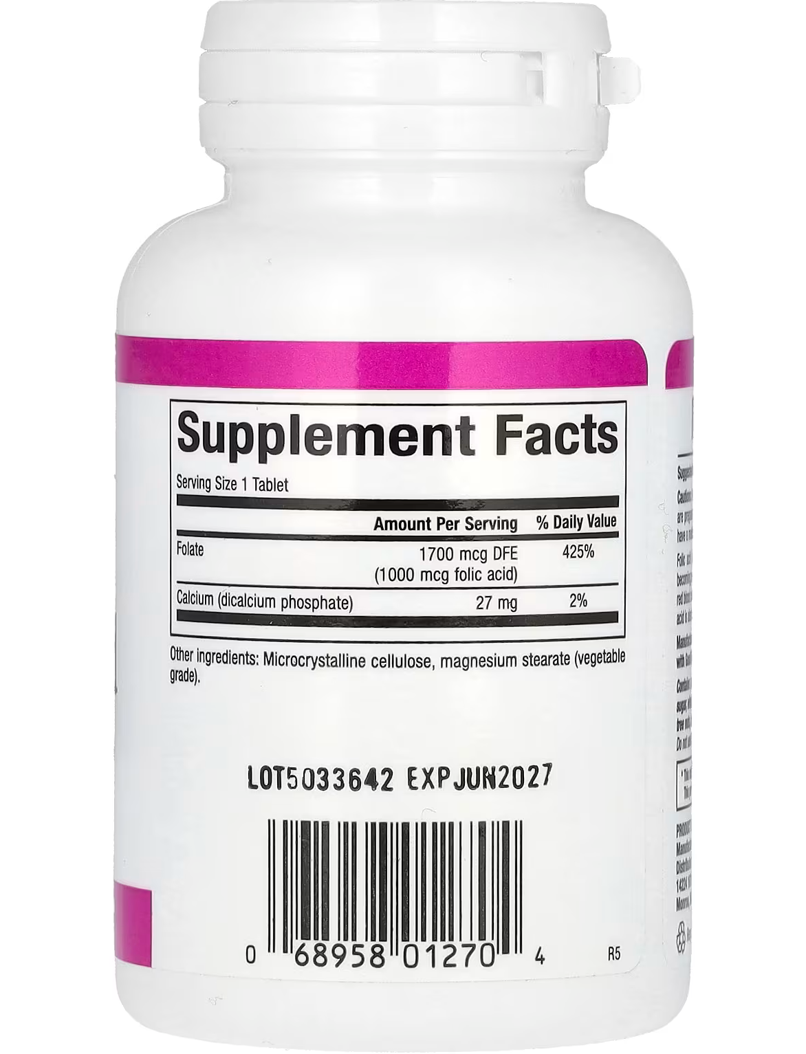 - Кількість в 1 порції: Фолат 1700 мкг харчового фолатного еквіваленту (1000 мкг фолієвої кислоти) 425%