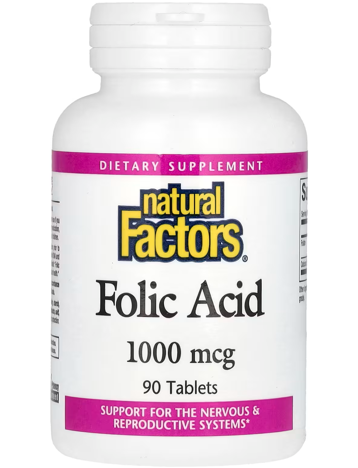 Харчова добавка. Дієтична добавка. Natural Factors Фолієва Кислота 1000 мкг 90 таблеток.