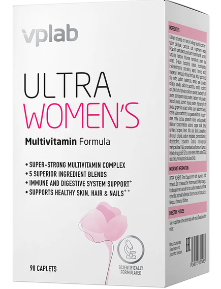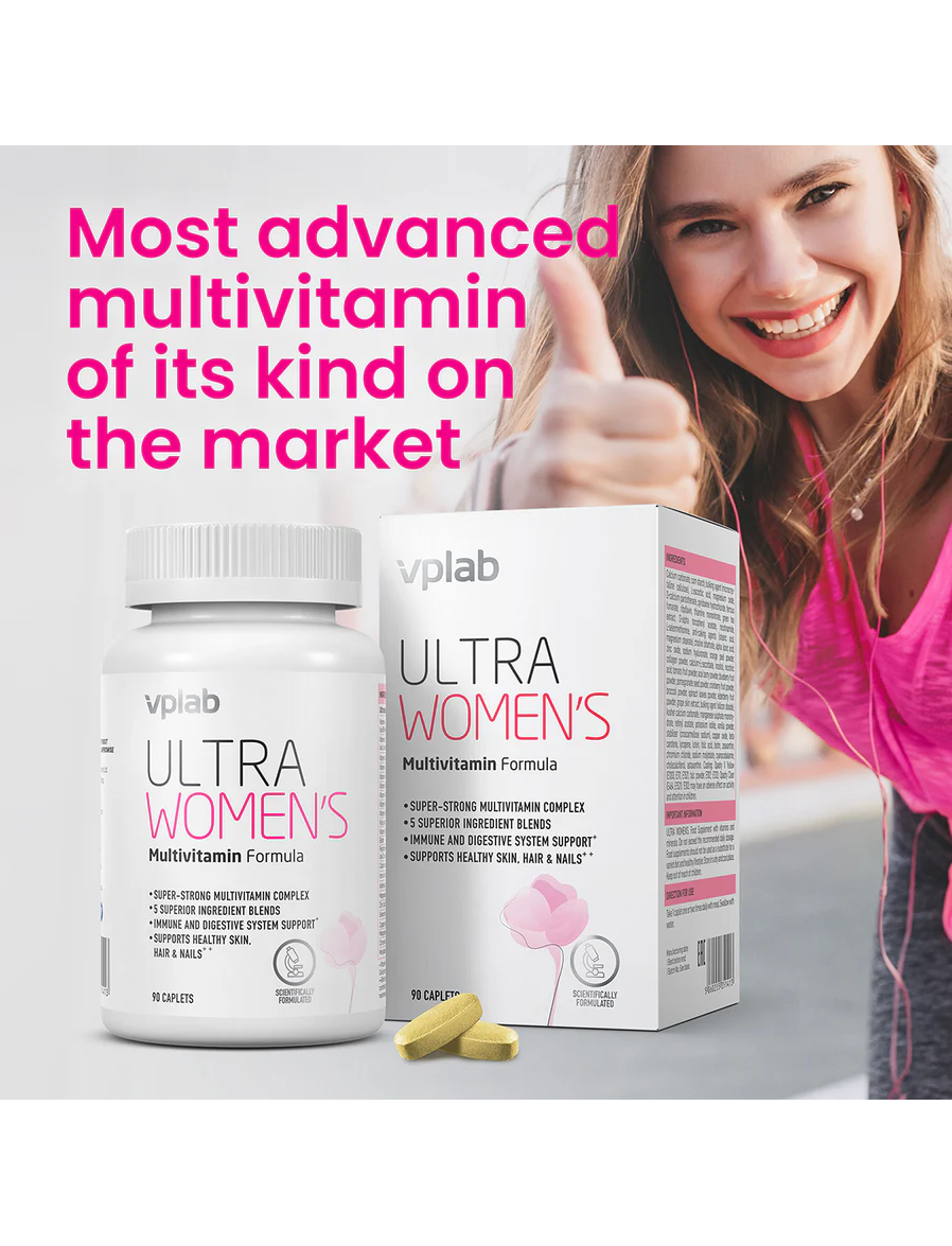 ULTRA WOMEN'S MULTIVITAMIN FORMULA від Vplab – це спеціально розроблений комплекс для активних жінок, який об’єднує 44 необхідні нутрієнти для підтримки краси, здоров’я кісток і життєвої енергії. Упаковка містить 90 легкоковтальних таблеток, що забезпечують щоденний баланс вітамінів і мінералів.