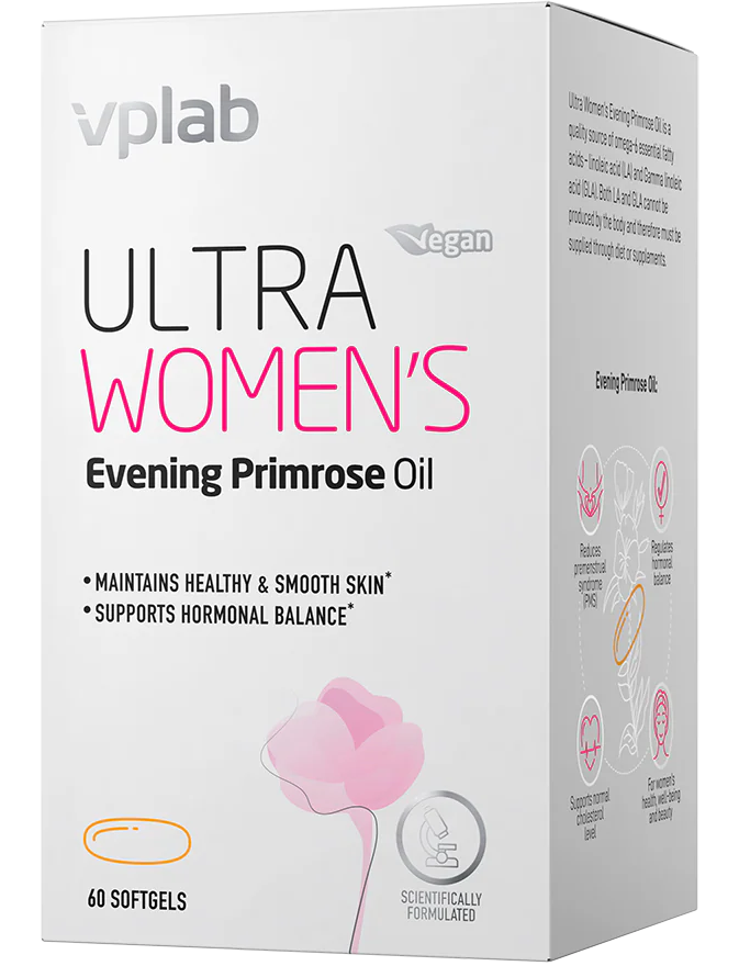 Олія Примули Вечірньої від Vplab – це комплексна харчова добавка, спеціально розроблена для жінок. Кожна м’яка капсула містить 1000 мг холодно віджатої олії примули вечірньої – багатого джерела омега-6 та омега-9 жирних кислот, які підтримують гормональний баланс, здоров’я шкіри та нормальний обмін речовин. Упаковка містить 60 легкоковтальних м’яких капсул.