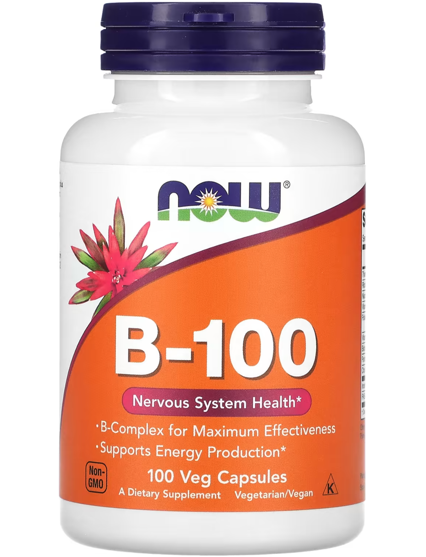 Капсули B-100 містять повний набір вітамінів групи B, а також холін та інозитол. Ці вітаміни сприяють виробленню енергії, нормальному обміну гомоцистеїну, зміцнюють здоров’я нервової системи. Вітаміни групи B розчиняються у воді, за винятком вітаміну B12, тому не можуть накопичуватися в організмі й вимагають щоденного поповнення. Вітамін В12 накопичується в печінці. Майже всі джерела цього вітаміну мають тваринне походження (м’ясо й молочні продукти), тому прийом харчової добавки з вітаміном B12 може бути особливо важливим для вегетаріанців.