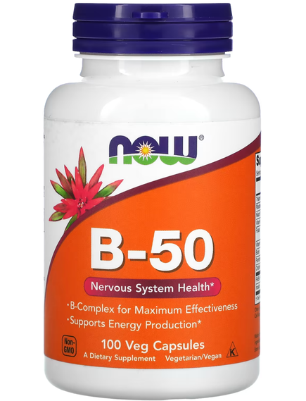 Капсули B-50 містять повний набір вітамінів групи B, а також холін і інозитол. Ці вітаміни сприяють виробленню енергії, нормальному обміну гомоцистеїну, зміцнюють здоров'я нервової системи. Вітаміни групи B розчиняються у воді і, за винятком B12, не можуть накопичуватися в організмі, тому вимагають щоденного поповнення. Вітамін В12 накопичується в печінці. Майже всі джерела цього вітаміну — тваринного походження (м'ясо і молочні продукти), тому прийом харчової добавки з B12 може бути особливо важливим для суворих вегетаріанців.