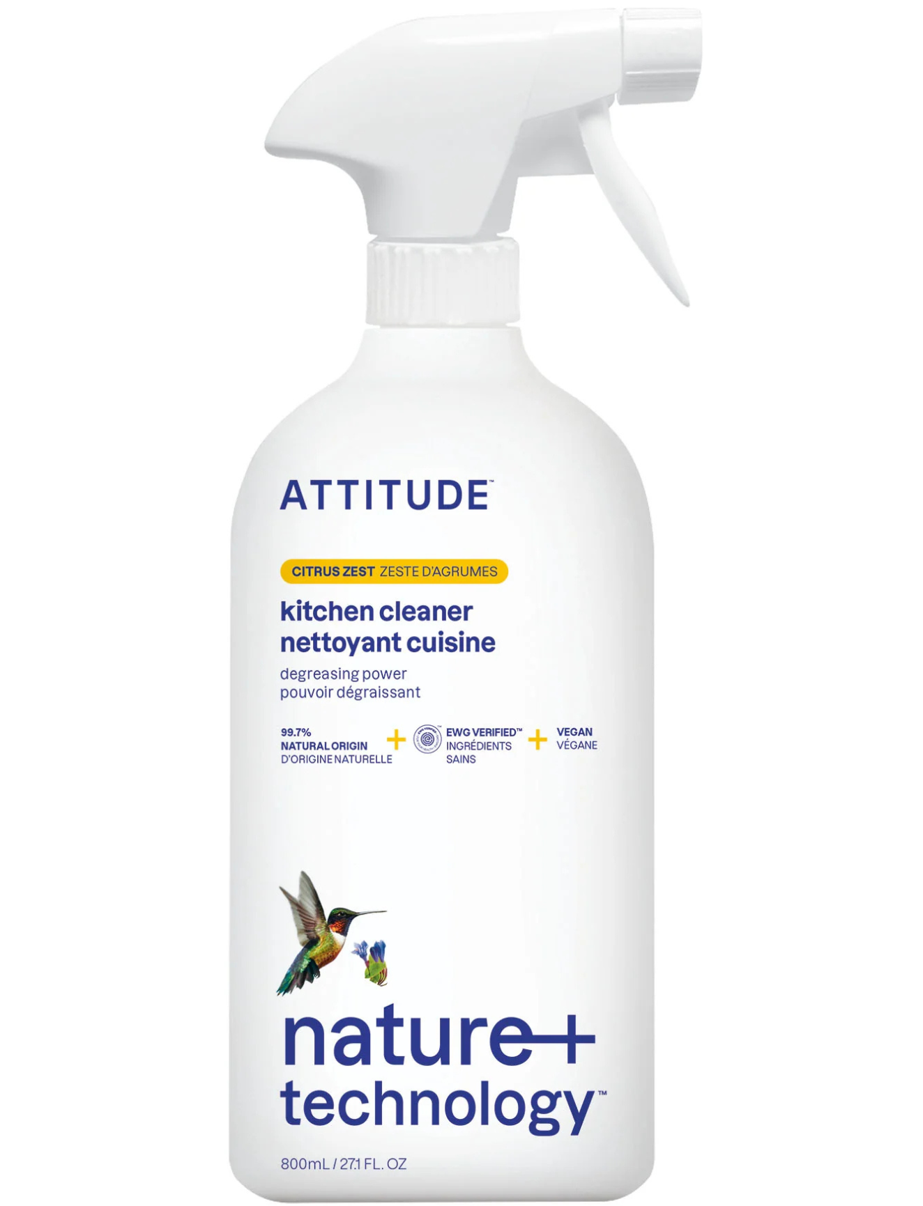 Наповнений свіжим та освіжаючим ароматом, засіб для чищення кухні ATTITUDE™ з цитрусовою цедрою ретельно очищує та знежирює ваші стільниці та побутову техніку.