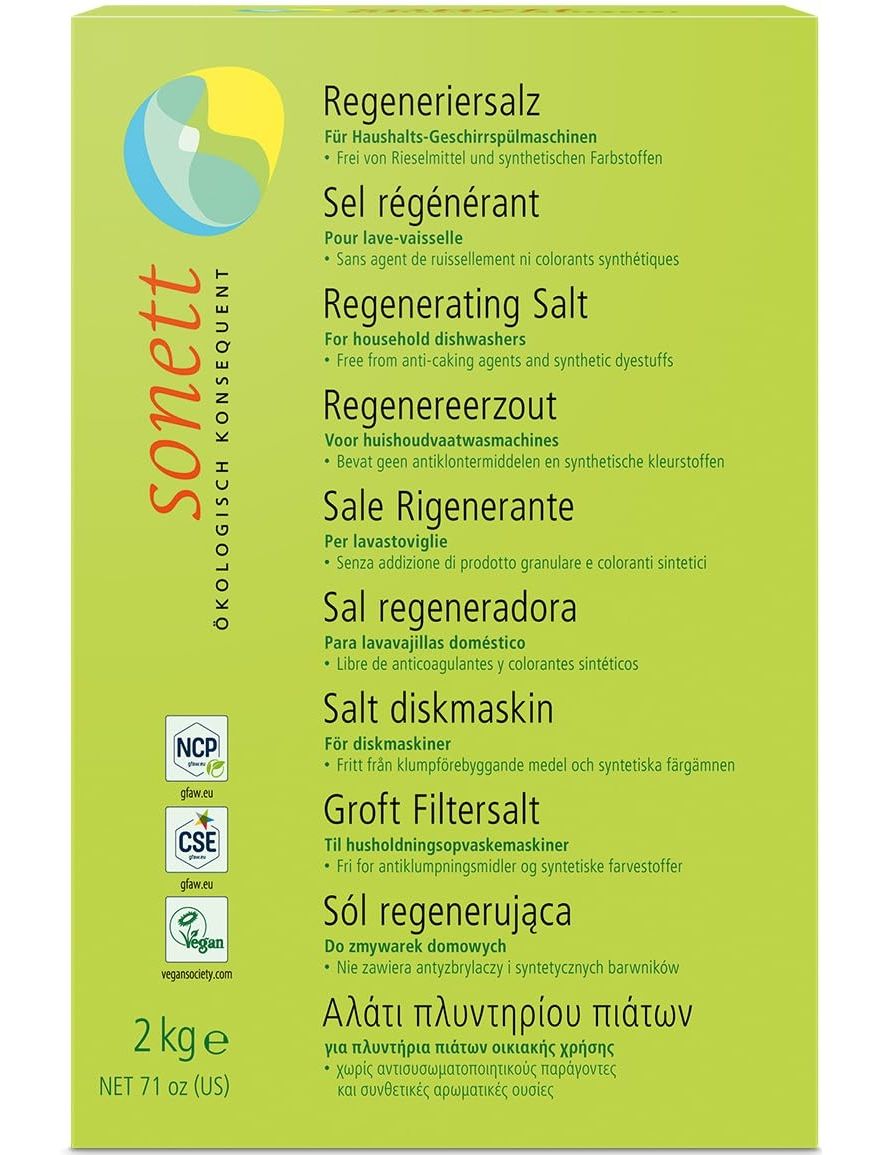Нашу регенеруючу сіль отримують у соляних копальнях з морською водою в Тунісі, так званих «соляних садах». Тут морська вода випаровується під дією тепла сонця, поки не утворюється концентрований розсіл. Цей розсіл подається в резервуари для кристалізації, де потім збирається кристалізована сіль. Потім його промивають, сушать, просівають і пакують. У вигляді концентрованого розчину в контейнері для солі посудомийної машини він обмінює зв’язані іони кальцію та магнію з іонами натрію регенеруючої солі, щоб іонообмінник знову міг подавати нову, м’яку воду.