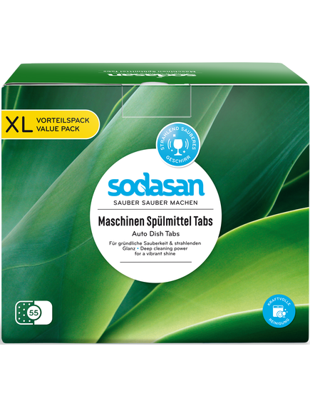 Використовуйте з ополіскувачем Sodasan і сіллю для посудомийної машини для отримання чудових результатів без вапняних плям і для захисту вашої посудомийної машини. Якщо ви помітили білі вапняні відкладення на посуді чи скляному посуді, установіть пом’якшувач води в посудомийній машині на більш високий рівень жорсткості води. (Див. інструкцію з експлуатації)