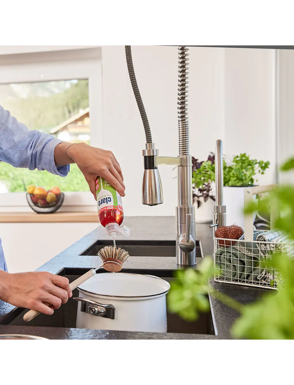Наш засіб для миття посуду з його біорозкладаною формулою захищає не лише довкілля, але й ваші руки. Завдяки концентрованій жиророзчинній здатності та натуральним поверхнево-активним речовинам із високою здатністю до біологічного розкладання, він бореться з найстійкішим брудом.