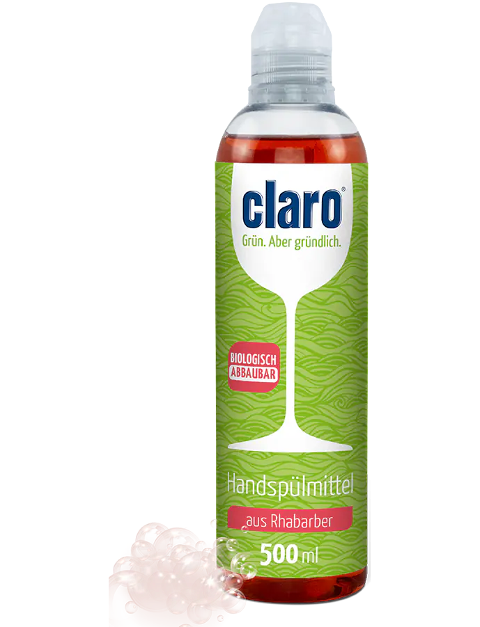Наша рідина для миття посуду claro Rhubarb з її біорозкладаною формулою захищає не лише навколишнє середовище, але й ваші руки. Завдяки концентрованій жиророзчинній здатності та натуральним поверхнево-активним речовинам з високою здатністю до біологічного розкладання, він бореться з найстійкішим брудом.