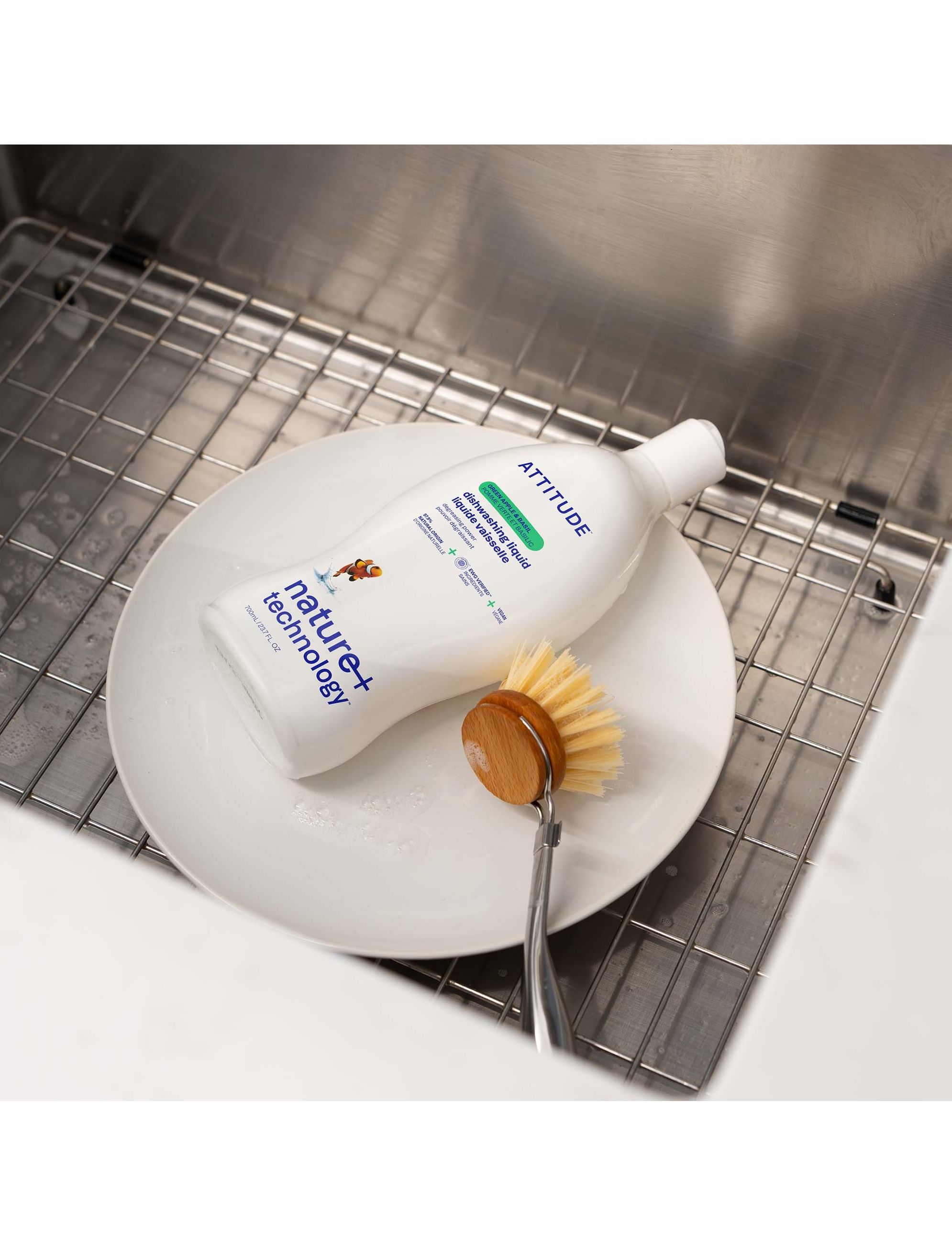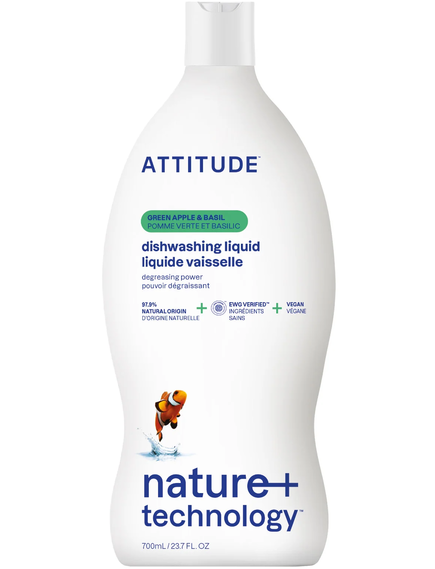 Виготовлена з 97% інгредієнтів натурального походження, рідина для миття посуду ATTITUDE™ з сильною знежирювальною дією стане незамінним елементом вашого нового дому. Нехай її фруктові та терпкі аромати перенесуть вас у сад із сильними трав'янистими нотками для свіжого та унікального відчуття. Ніколи не залишайте рідину для миття посуду без кінця — продовжуйте поповнювати свою пляшку завдяки нашим інноваційним екологічним змінним балончикам. Її веганська формула, не тестована на тваринах, залишає ваш посуд чистим та блискучим щодня.