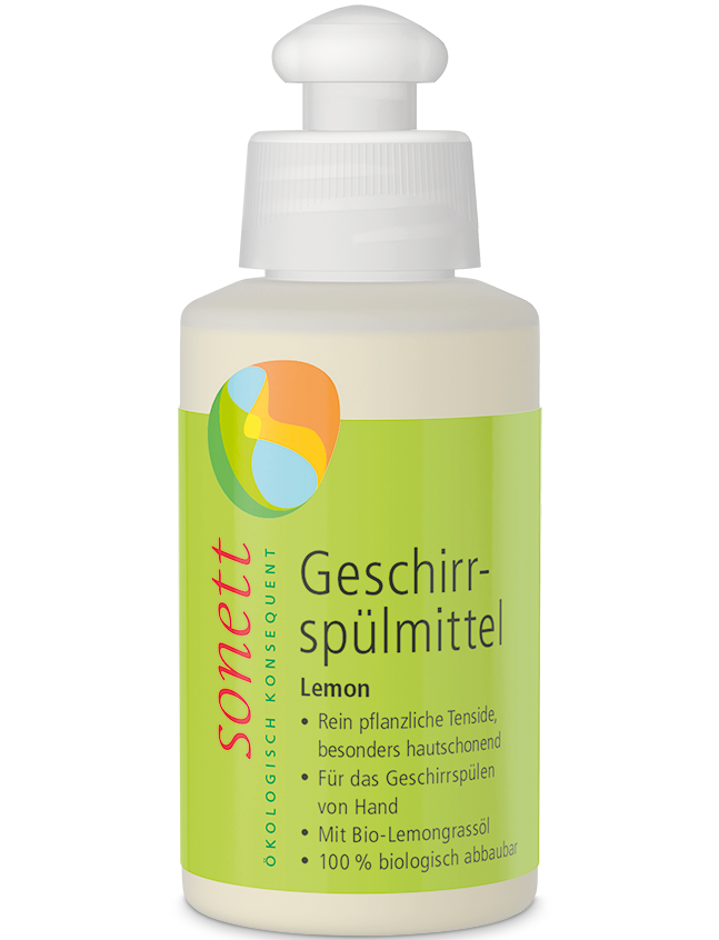Засіб для миття посуду Sonett є концентрованим продуктом і тому дуже економічний у використанні. Використані поверхнево-активні речовини, сульфат кокосового жирного спирту та цукрова поверхнево-активна речовина, на 100% піддаються біологічному розкладанню, і в цій комбінації дуже сприятливі для шкіри.