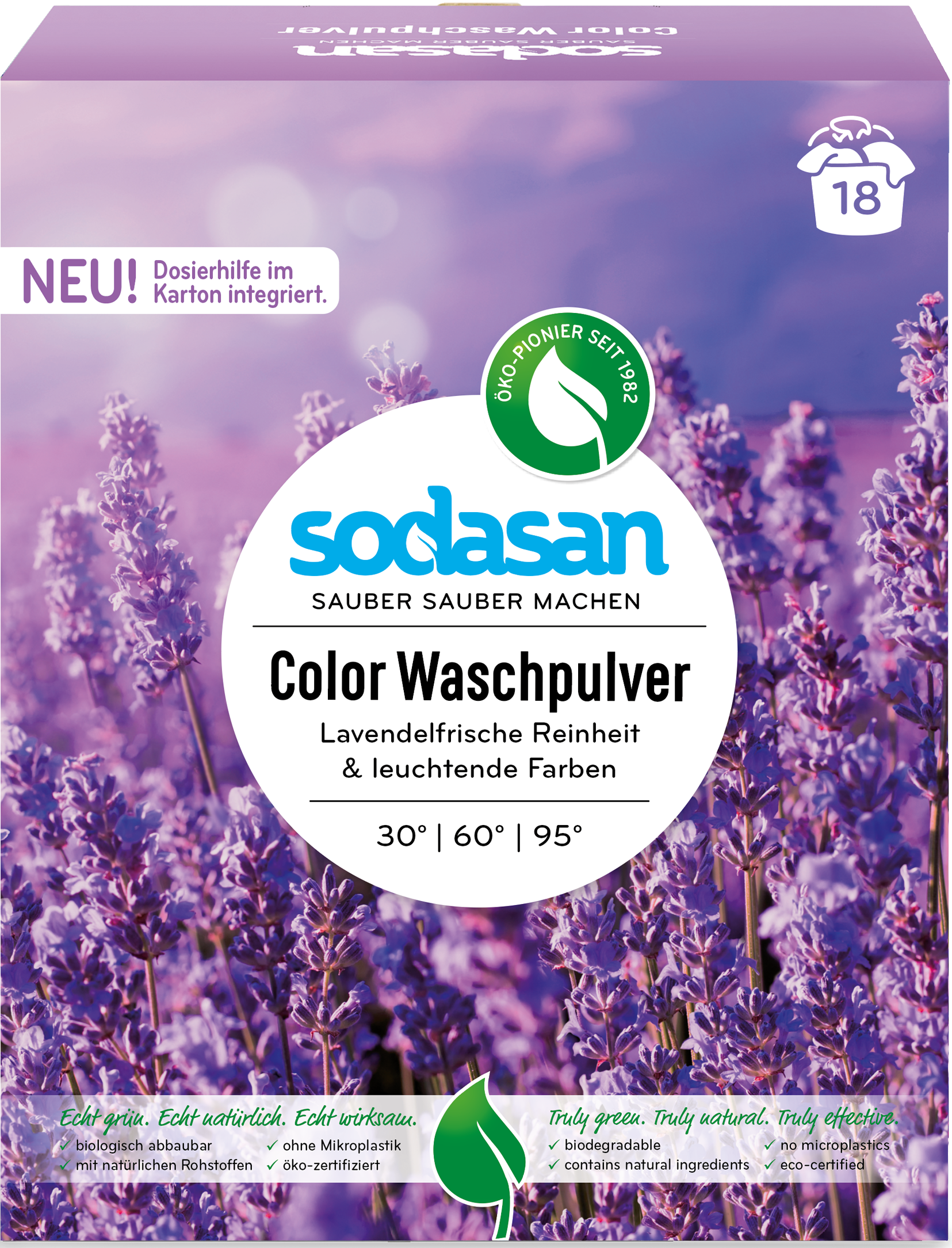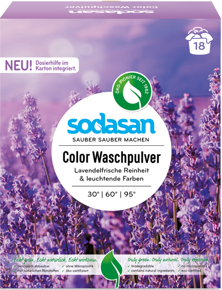 Інноваційна формула із сертифікованим органічним рослинним милом і содою вивільняє свою очищувальну силу лише за 30 градусів. Глибоко очищає всі текстильні волокна, крім вовни та шовку.