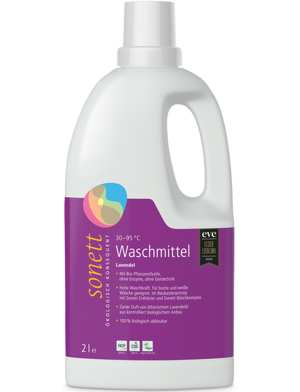 Спеціальний, енергозберігаючий метод омилення Sonett, використання олій та ефірних олій з контрольованого органічного вирощування та надзвичайно вигідне співвідношення ціни та ефективності прання для рідких миючих засобів є видатними характеристиками цього продукту.