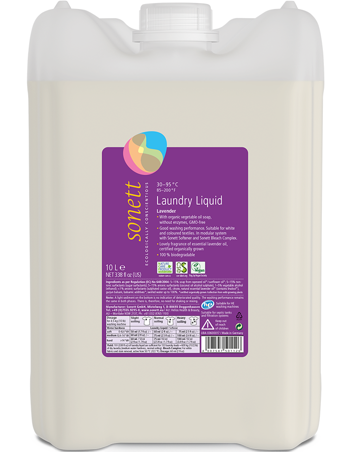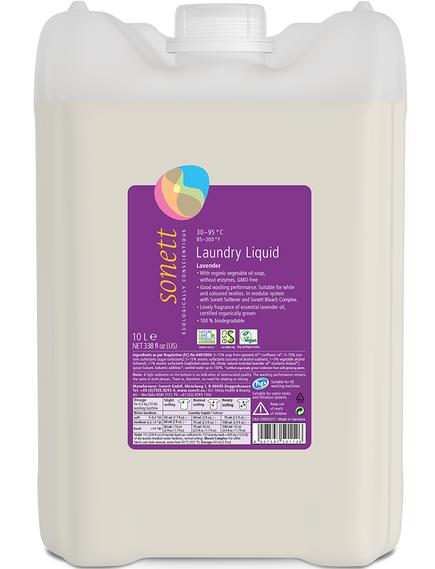 Спеціальний, енергозберігаючий метод омилення Sonett, використання олій та ефірних олій з контрольованого органічного вирощування та надзвичайно вигідне співвідношення ціни та ефективності прання для рідких миючих засобів є видатними характеристиками цього продукту.