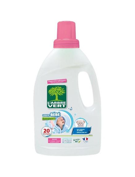 Гипоаллергенное моющее средство для детей L'Arbre Vert было специально разработано для нежной детской кожи. Этот экологичный стиральный порошок не содержит энзимов и особенно эффективен для решения обычных задач вашего ребенка. Это детское моющее средство без красителей одобрено врачами-аллергологами из Ассоциации клинических исследований в области аллергологии и астмологии (ARCAA). Детское моющее средство производства Франции.