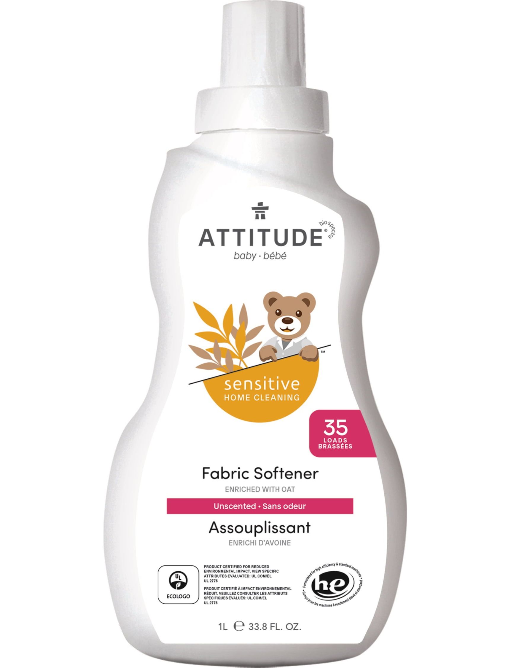 Неароматизований пом’якшувач для білизни ATTITUDE™ ідеально підходить для ніжної шкіри вашої дитини.