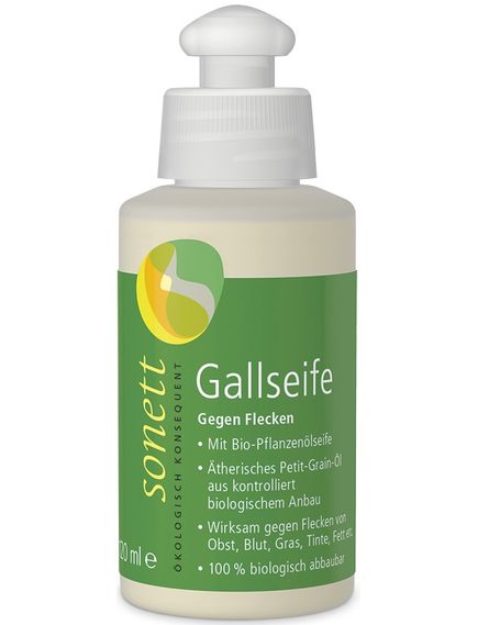 Яловича жовч є одним із традиційних засобів проти плям, основними діючими речовинами якого є жовчні кислоти холева і таурохолева кислоти, які тонко диспергують жири і жироподібні речовини, здатні розчиняти і зв'язувати барвники. Мило, виготовлене з ріпакової/соняшникової олії та оливкової олії з додаванням лугу, набухає та розпушує бруд, а також підтримує дію бичачої жовчі на видалення плям. Цукровий поверхнево-активний засіб отримують із суто рослинної сировини – цукру, крохмалю та кокосового жиру шляхом хімічних реакцій за допомогою кислот. Апельсинові терпени з апельсинової шкірки додатково збільшують жиророзчинну здатність мила Sonett Gall.