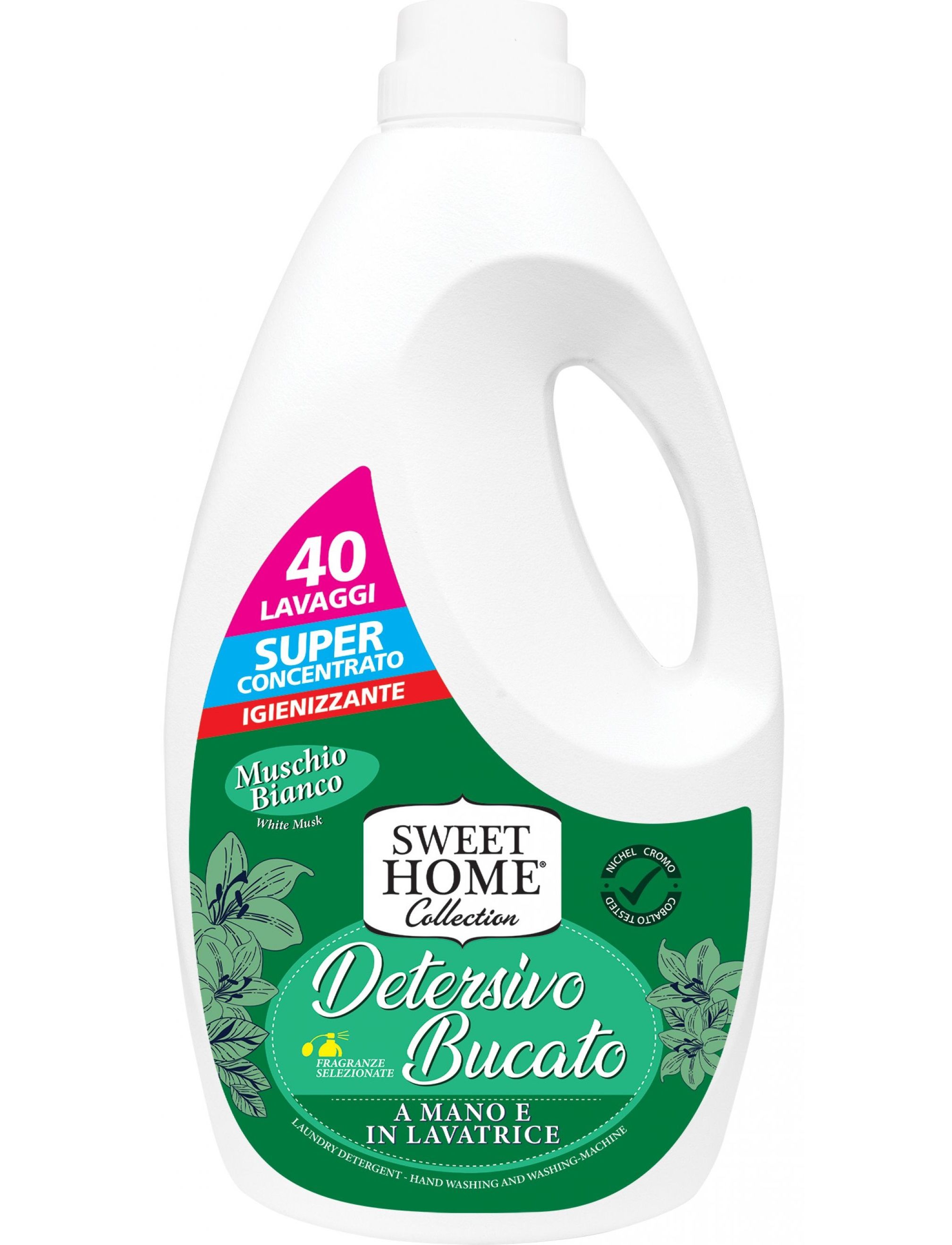 Суперконцентрований гель для прання Sweet Home Collection Detersivo з ароматом білого мускусу, створений з ретельно відібраних і вишуканих інгредієнтів і ароматизаторів, призначений для всіх типів тканин, включаючи делікатні. Гарантує глибоку гігієнічну чистоту, яскраві кольори білизни та інтенсивний аромат. Його склад підходить як для білої, так і для кольорової світлої і темної білизни. Не містить ензимів, тому підходить людям з чутливою шкірою. Ефірна олія чайного дерева має антибактеріальну дію і тим самим завершує догляд за гігієнічно чистою білизною. Дерматологічно перевірено.