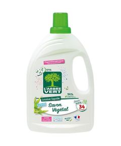 L'arbre Vert, Франция / Lessive au Savon Vegetal / универсальный гель для стирки белых и цветных вещей для всей семьи / уникальная формула геля не только активно борется с разнообразными загрязнениями и пятнами на светлых и темных тканях, но и заботиться о чувствительной коже / гель разработан на основе натурального растительного мыла / придает стиранным вещам особую нежность и мягкость / обладает свежим нейтральным ароматом / активное действие геля уже при температуре 30 градусов / большой экономный формат / 1500 мл