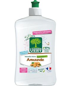 L'arbre Vert - Amande - Франция. Гипоаллергенное эко-средство для мытья посуды вручную, без отдушек. Создано на растительное основе и обладает нейтральным ароматом. Подходит для мытья детской посуды. Эффективная моющая формула активно борется с разными типами загрязнений даже при низких температурах. Гипоаллергенная формула подходит для всех типов кожи. Удобный формат упаковки: бутылочка с крышкой-дозатором. Объем - 750 мл.