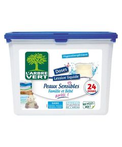Гипоаллергенные капсулы для стирки для семьи и ребенка. Действует от 30°C Моющее средство для чувствительной кожи L'Arbre Vert не содержит энзимов и MIT*. Это гипоаллергенное моющее средство подходит всем, даже малышам и людям с особо нежной кожей. Формат дозатора моющего средства: 580,8 г (22 порции)