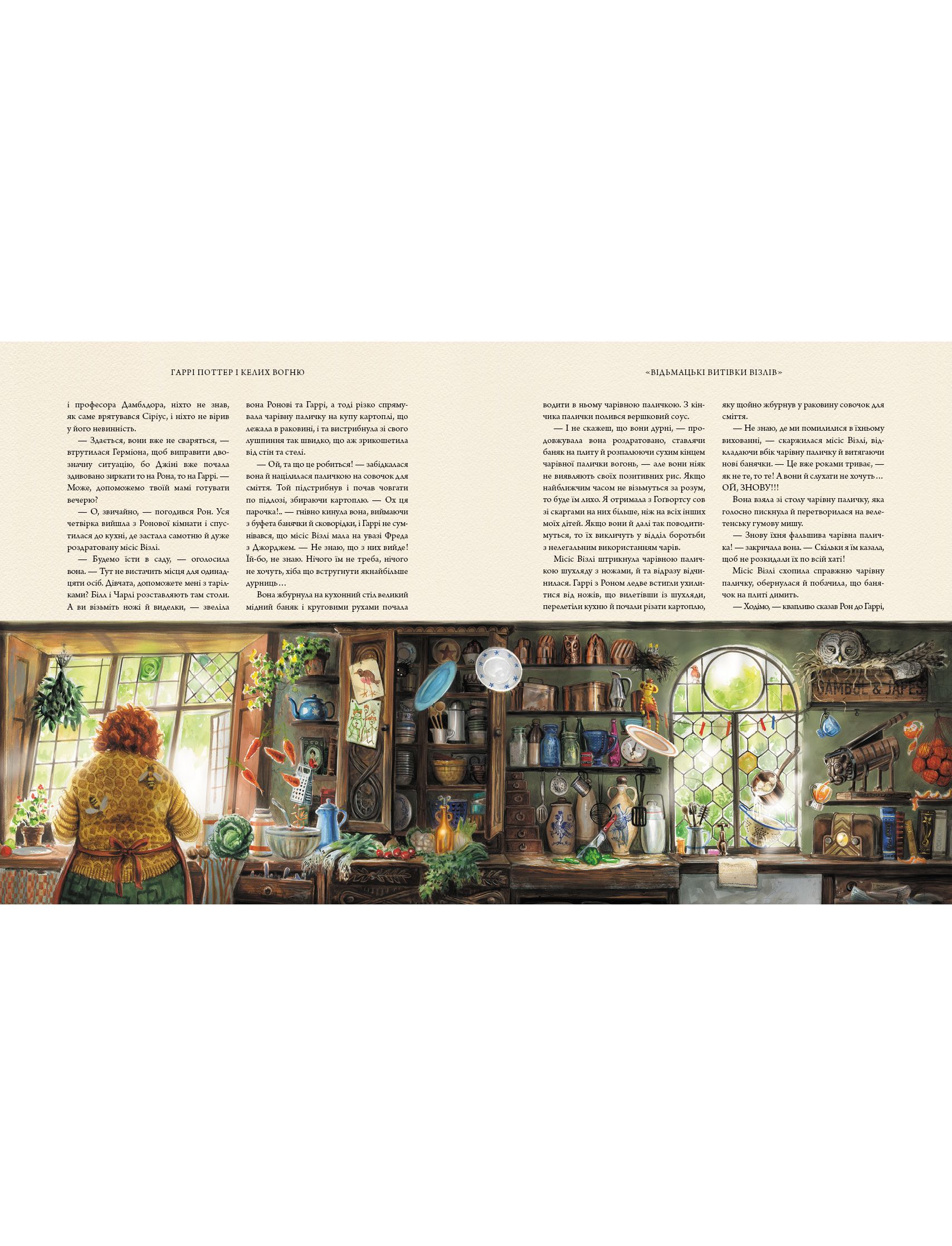 Неповторні мистецькі чари Джима Кея — кавалера медалі Кейт Ґрінвей — допомагають йому вичаклувати захопливі пейзажі й образи незабутніх персонажів — Дикозора Муді, Віктора Крума, Ріти Скітер та інших — творячи тло для битви між Бобатоном, Дурмстренґом і Гоґвортсом за здобуття Тричаклунського кубка, яка розгортається на сторінках цього розкішного ілюстрованого видання четвертої книжки з улюбленої серії Дж.К. Ролінґ.