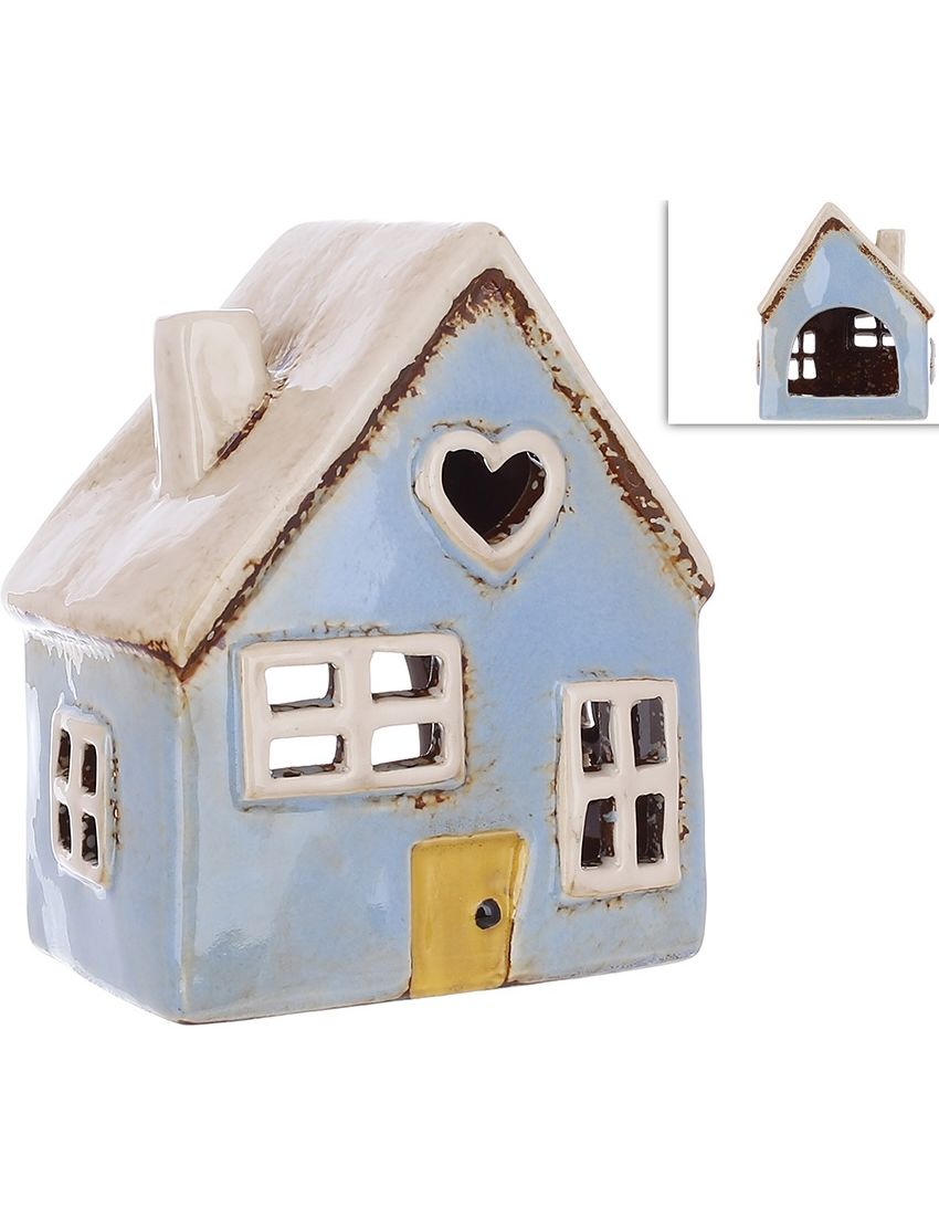 Свічник керамічний Будиночок Блакитний 13 см