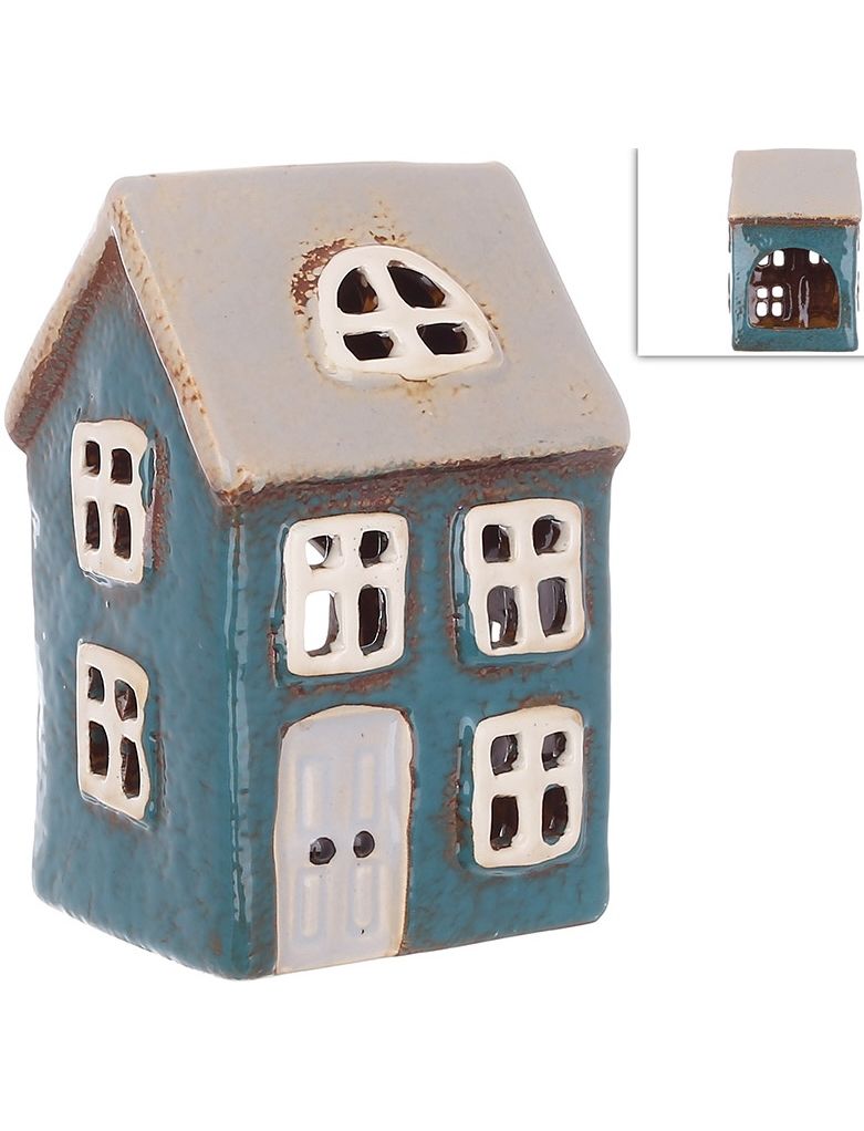 Свічник керамічний Будиночок Синій 12 см