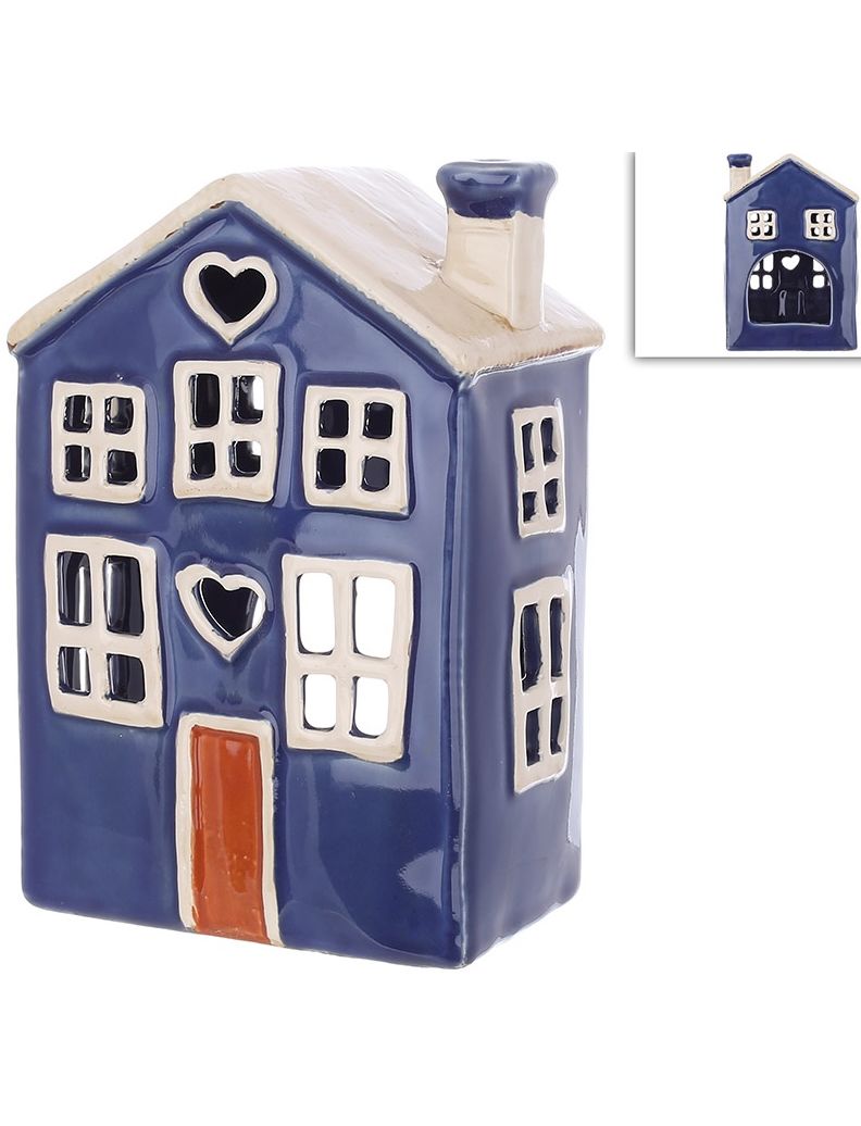 Свічник керамічний Будиночок Синій 18 см