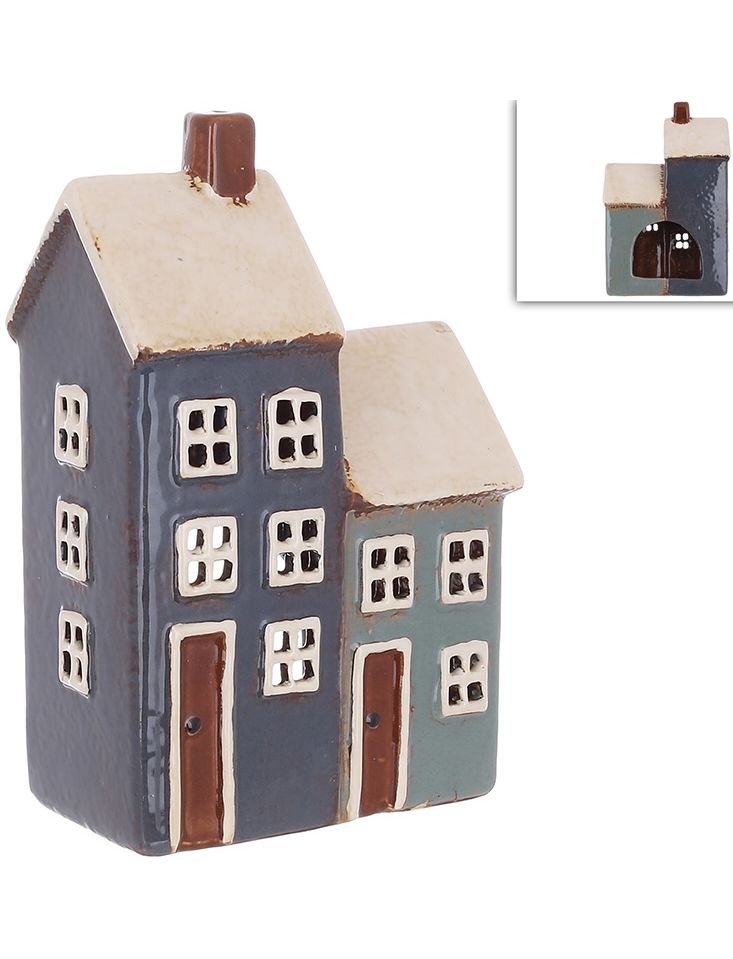 Свічник керамічний Будиночок Синьо-Зелений 17,5 см