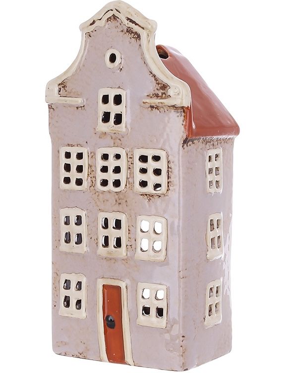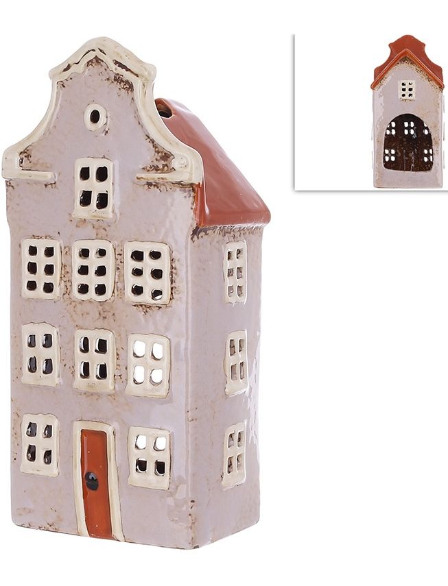 Свічник керамічний Будиночок Сіро-Рожевий 19 см