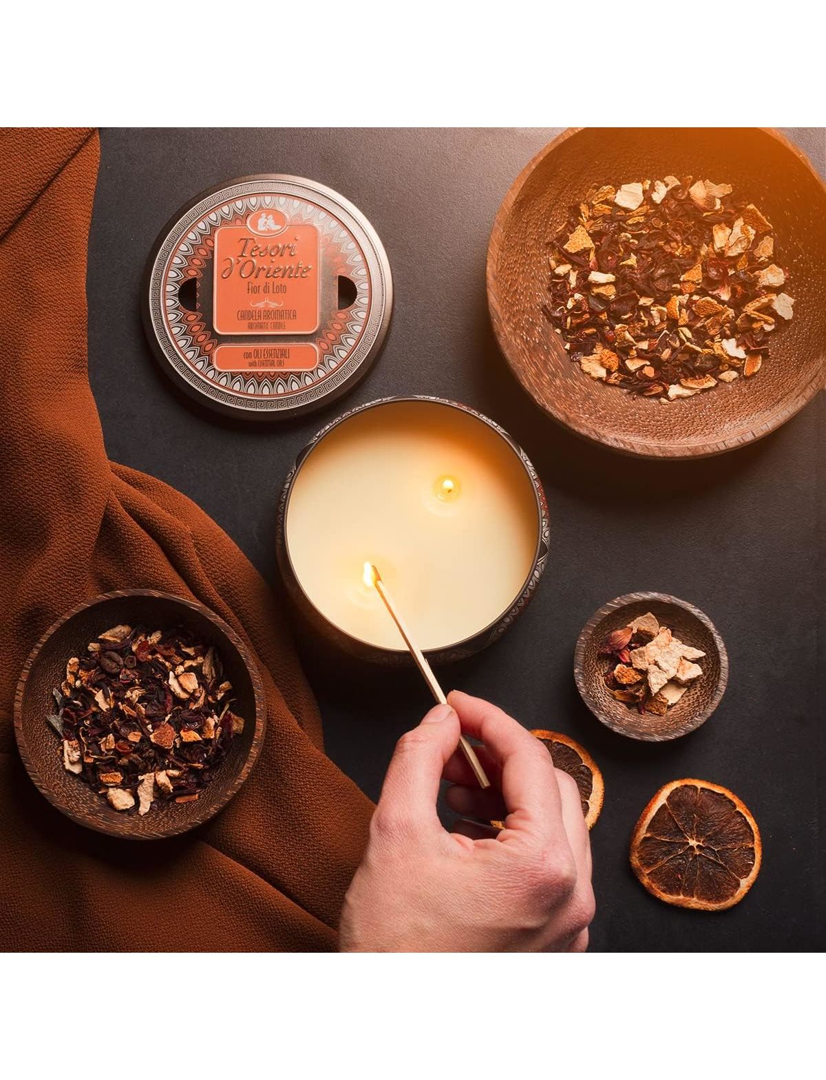 Свічка Tesori d'Oriente з ароматом квітки лотоса – це ексклюзивний продукт, який втілює в собі глибину і багатогранність ароматерапії. Важливо пам'ятати, що моя інформація може бути обмеженою, і за цей час могли з'явитися нові продукти або зміни в асортименті. Однак, я надам уявлення про те, чого можна очікувати від такої свічки, виходячи з загальних характеристик.